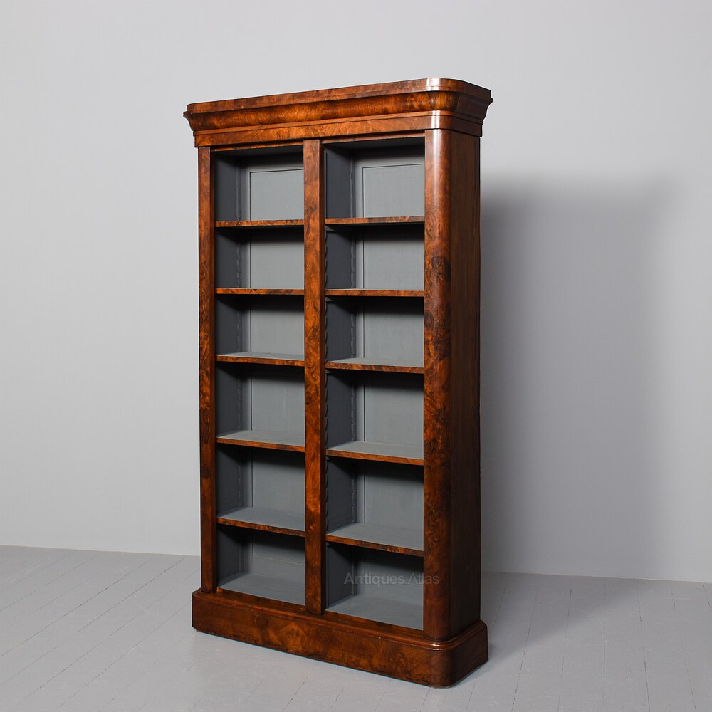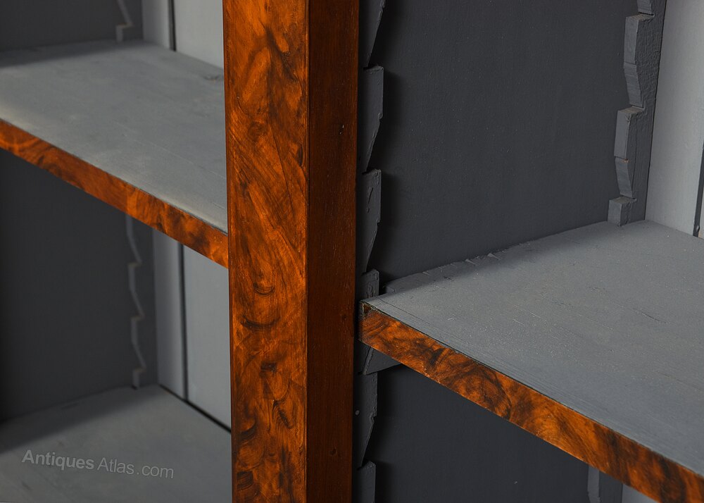 Mid-Victorian figured walnut, tall open bookcase
