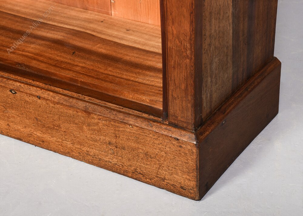 Circa 1870. Fine quality mid-Victorian, neat-sized, mahogany open bookcase. The rectangular top with moulded fore edge with a lovely mellow colour and good patina. The bookcase with two adjustable mahogany shelves flanked by simple pilasters all supported on an enclosed plinth base. All in excellent condition.