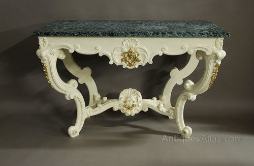 A decorative mid 19th century French console table in the Rococo style