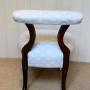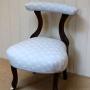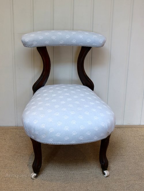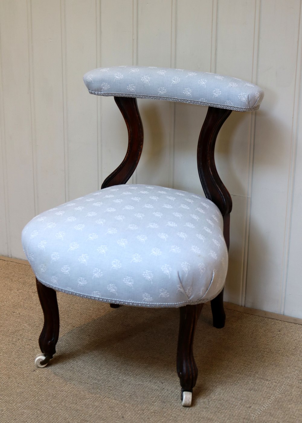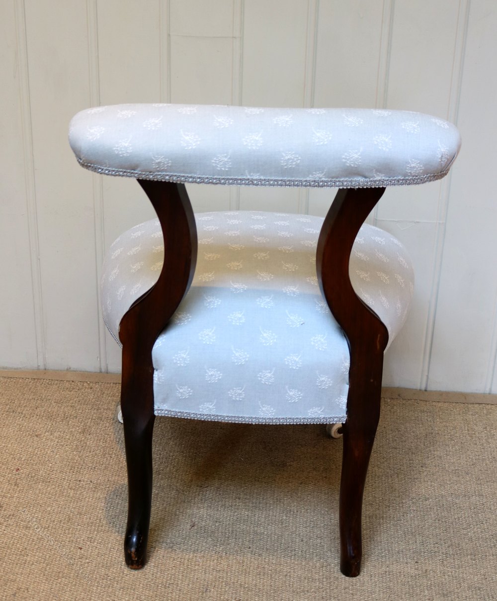 Mid Victorian rosewood framed nursing / prie dieu chair having an upholstered seat and back raised on turned legs terminating in the original ceramic castors