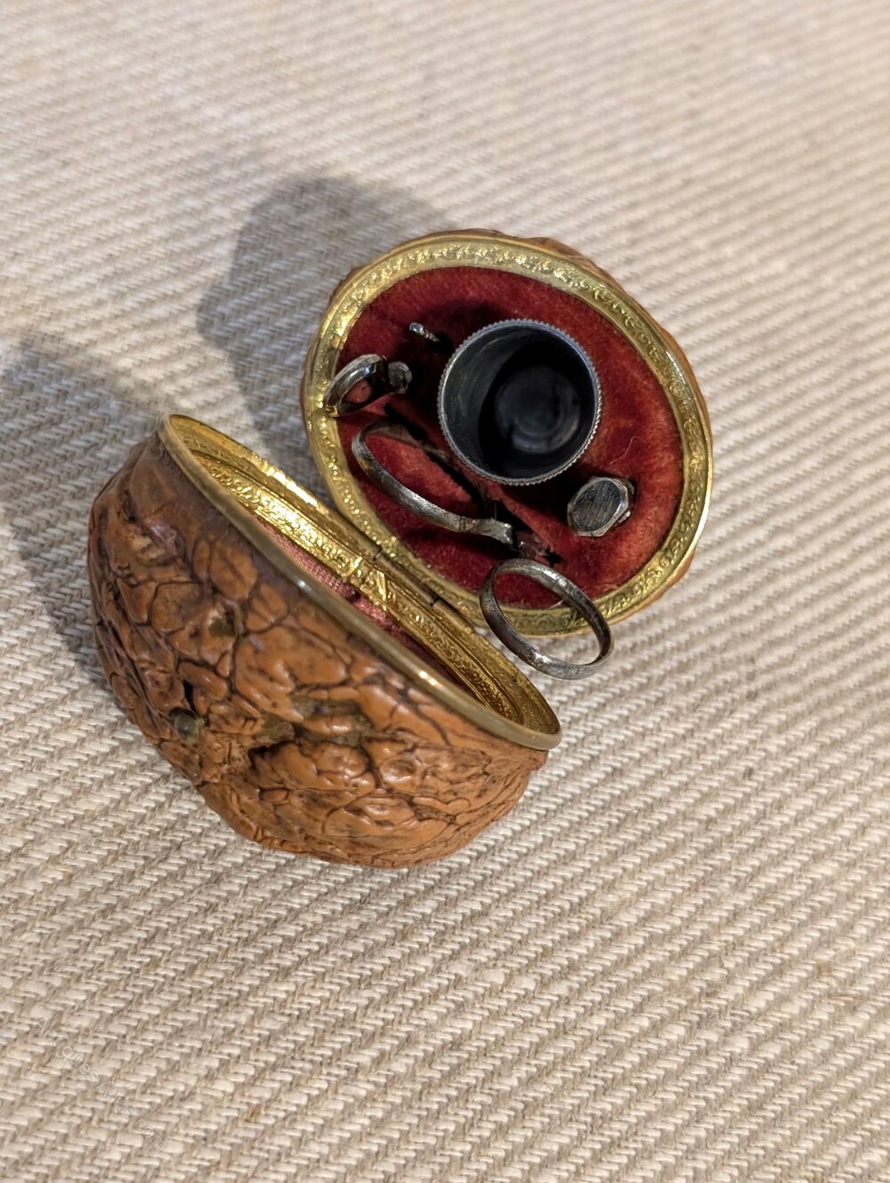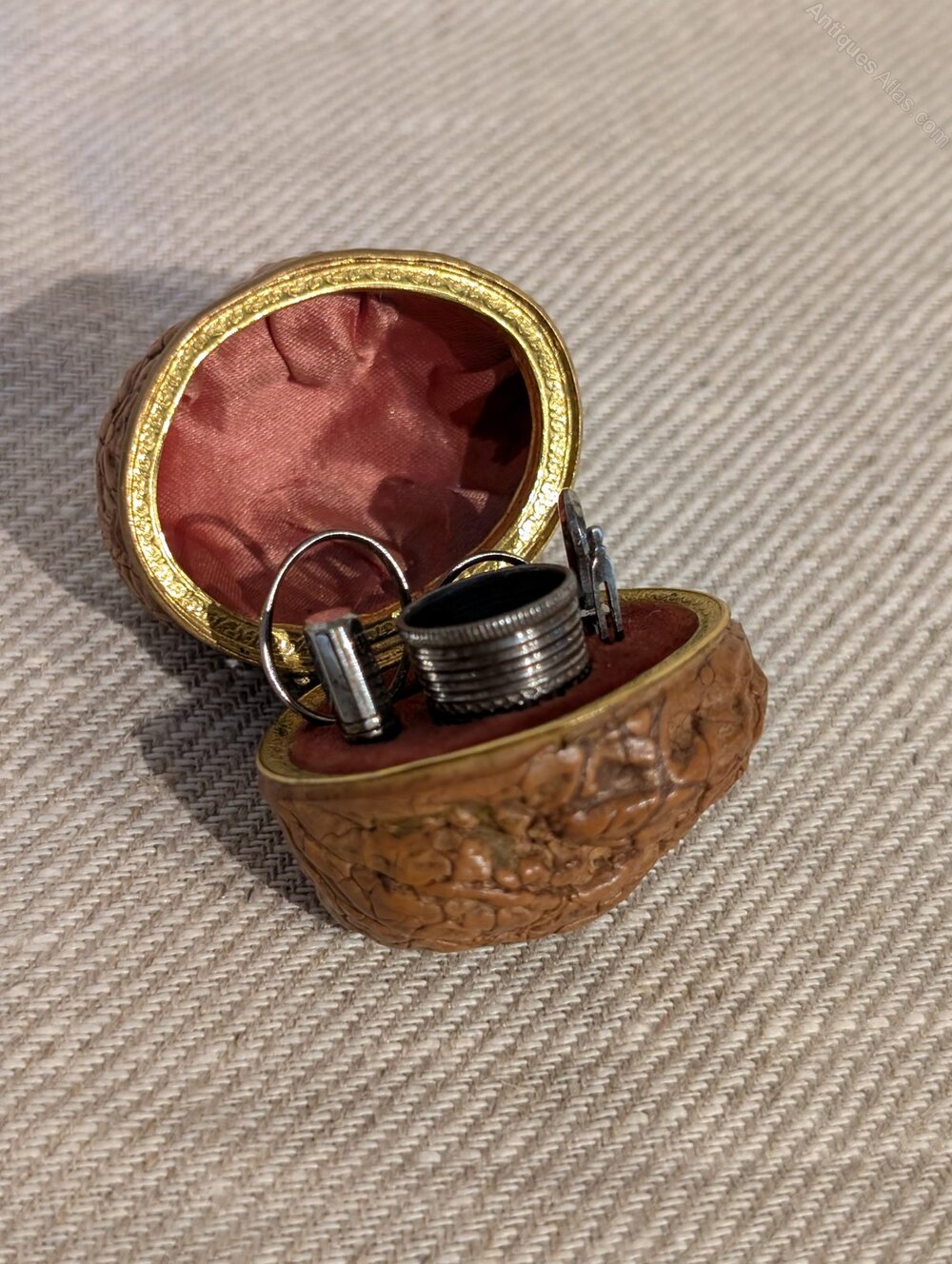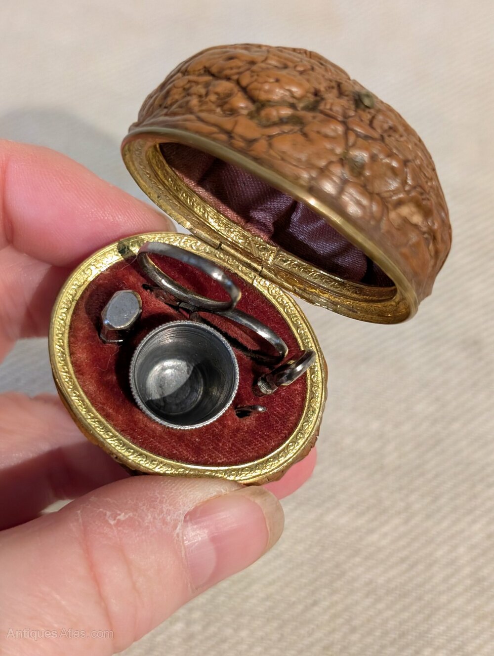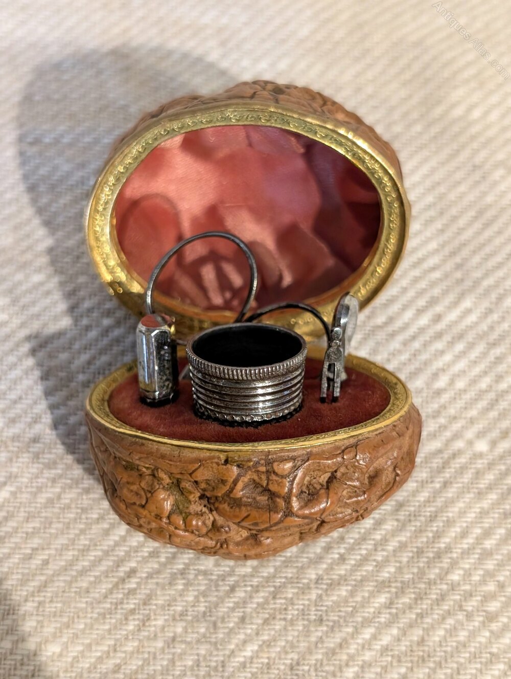 Mid 19th century Walnut Etui. In excellent original condition with all contents present