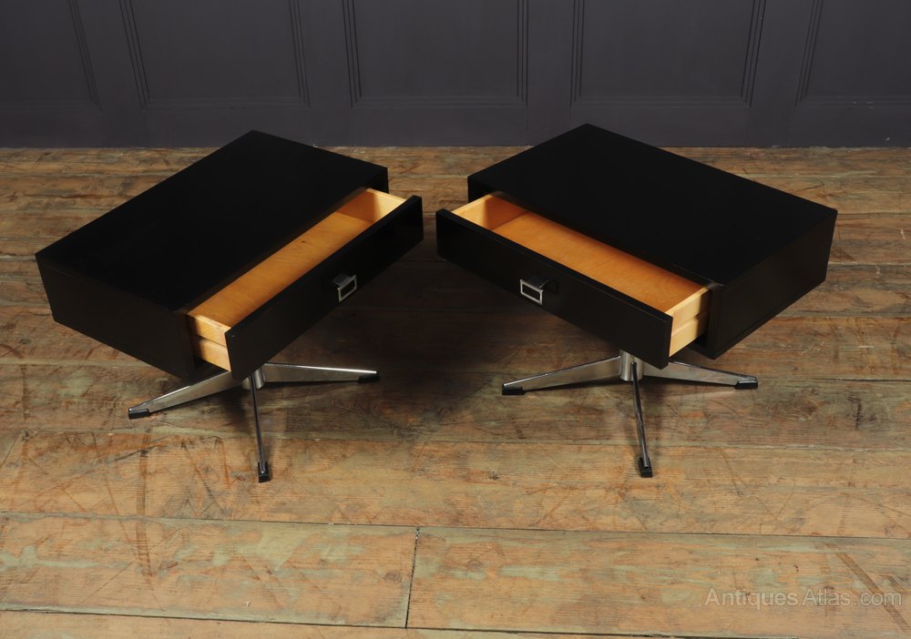 Mid Century Black and Chrome Bedside Tables