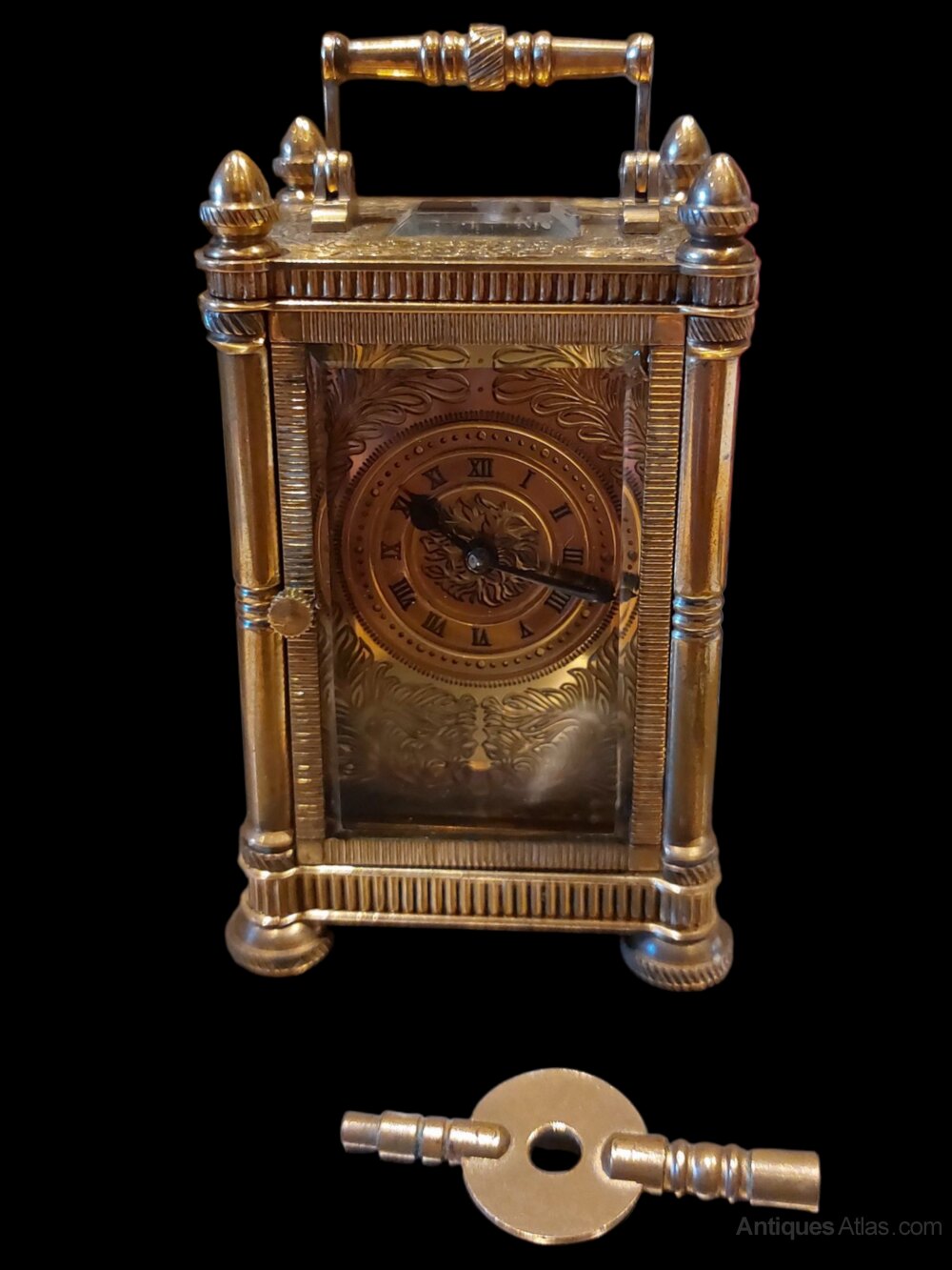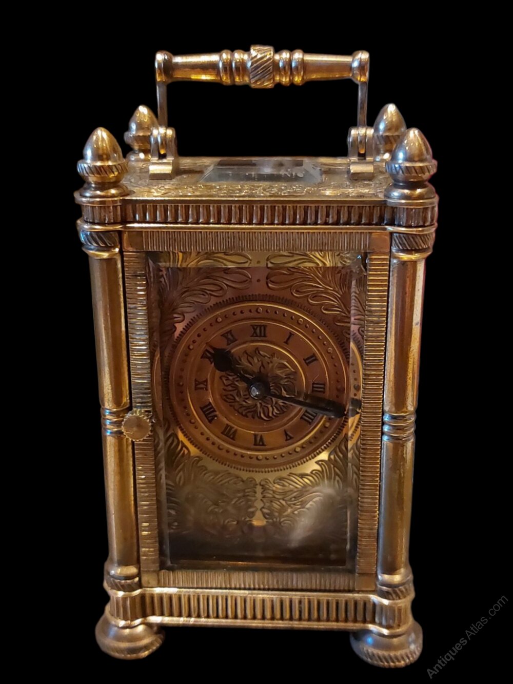 French Carriage Clock Ormolu Guilt Filigree Panels