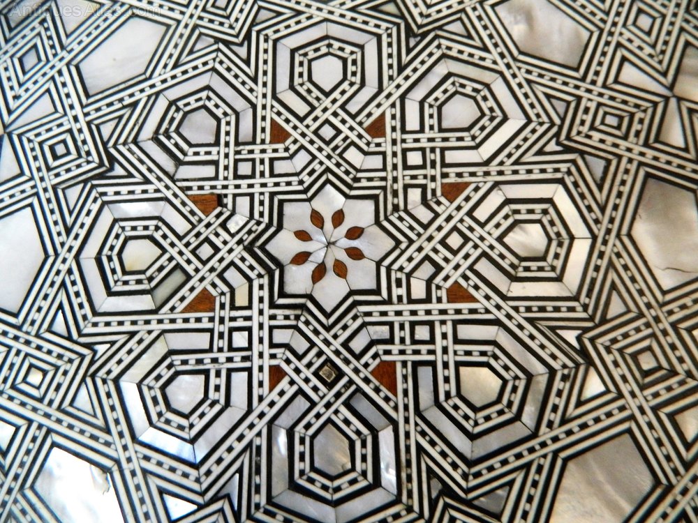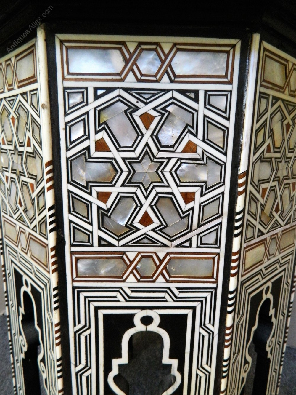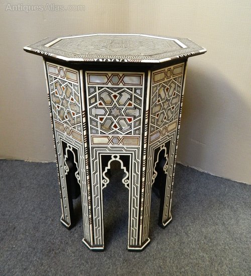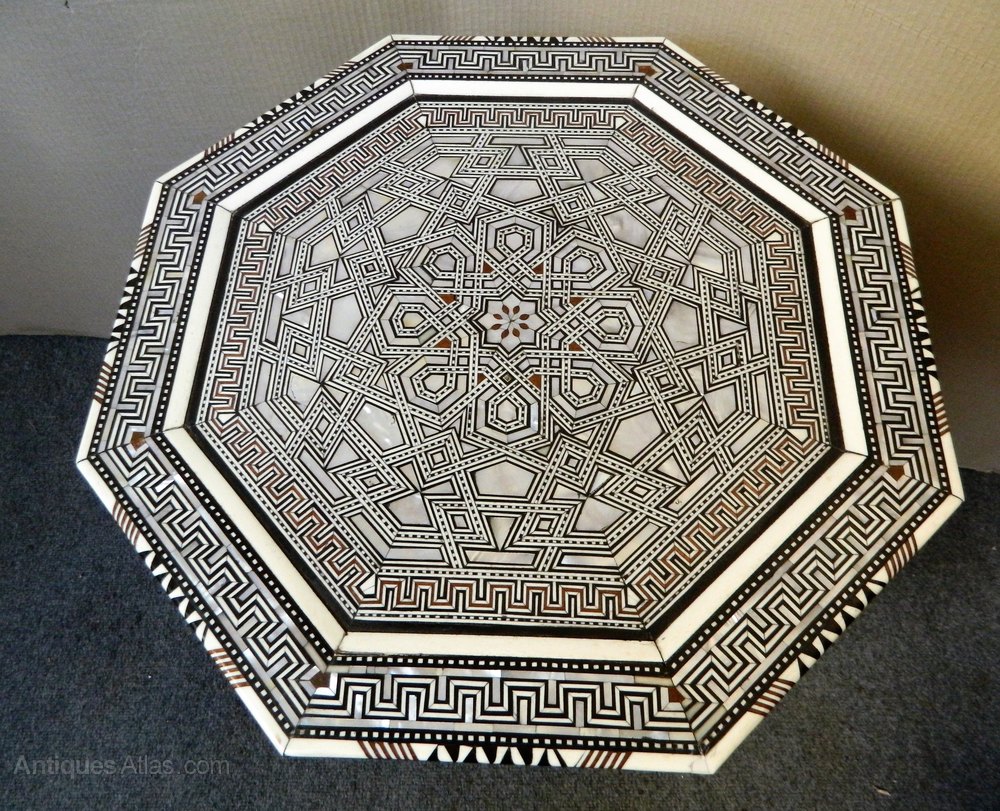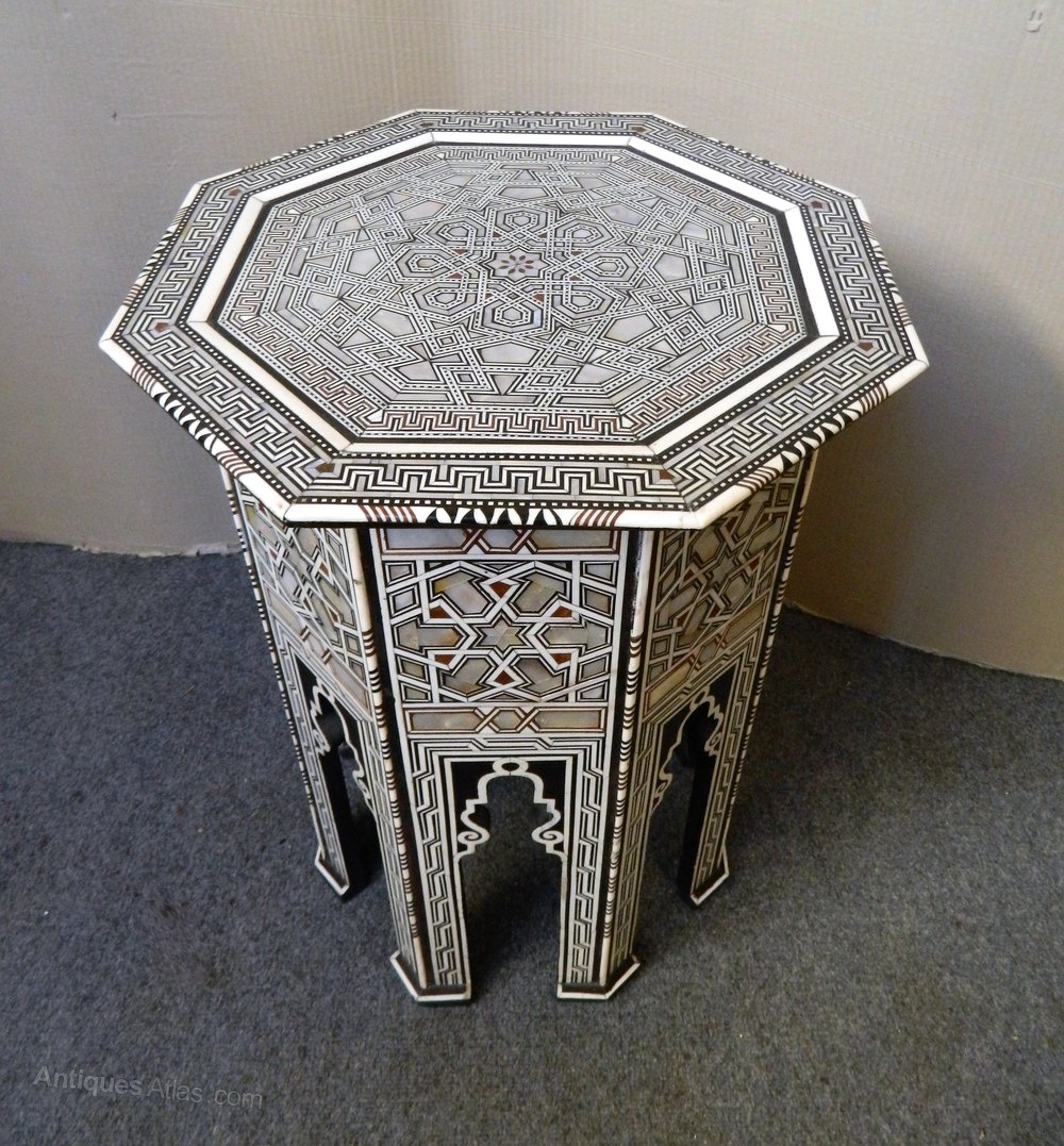 Exquisite example of a Moorish table , octagonal form and beautifully inlaid with bone and mother of pearl, a rare find in this colour and design.