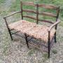 A rare ash Morris & Co bench in need of re-rushing or reupholstery in good used condition measuring 116 cm x 56 x 92.