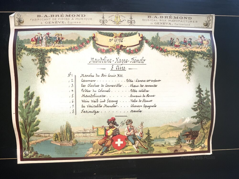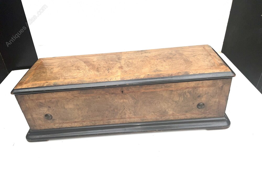 One of the best by this renowned maker, very large and heavy must of been very expensive when bought obvious by a very wealthy person of taste. Beautifully veneered in walnut and inlaid case, the length being 84 cm height 25 cm width 32 cm drum being 45 cm long. the original musics sheet and that's in excellent condition too. offering free worldwide delivery reference DBGS Tel: +44 7505 165 843 We accept online payments for all our items listed: Bank transfer cash on collection or if wishing over the phone using your debit or credit cards, also doing layby payments plan, or email giving your address details & contact number and we shall send you your items invoice to make payment with your card. Send your request to - john.strong2@gmail.com