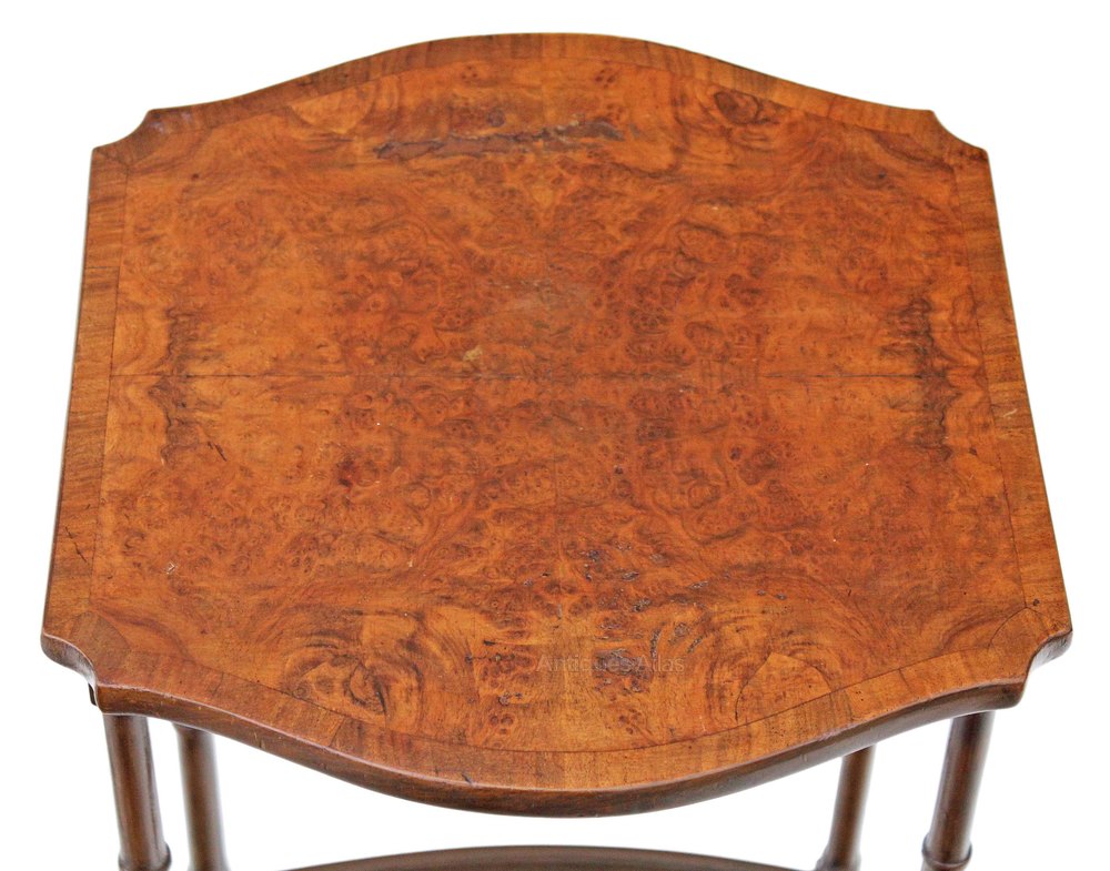 Antique early 20C nest of 4 burr walnut Georgian revival side or occasional antique tables.