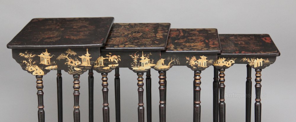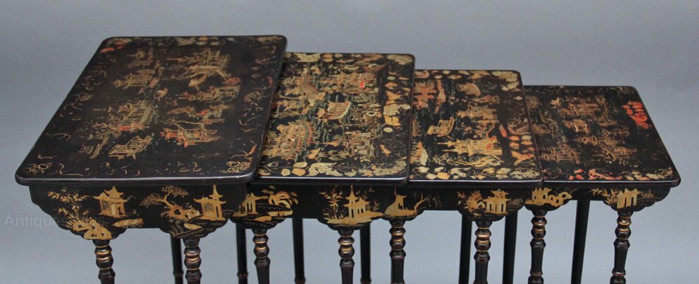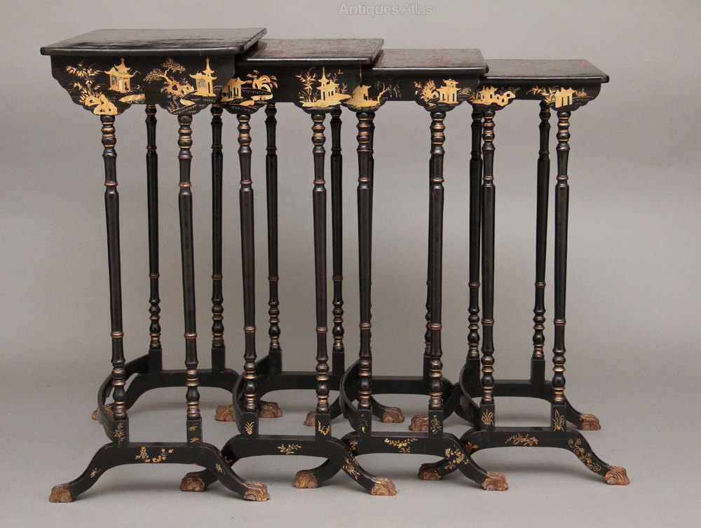 Early 20th Century Chinoiserie nest of four antique tables.