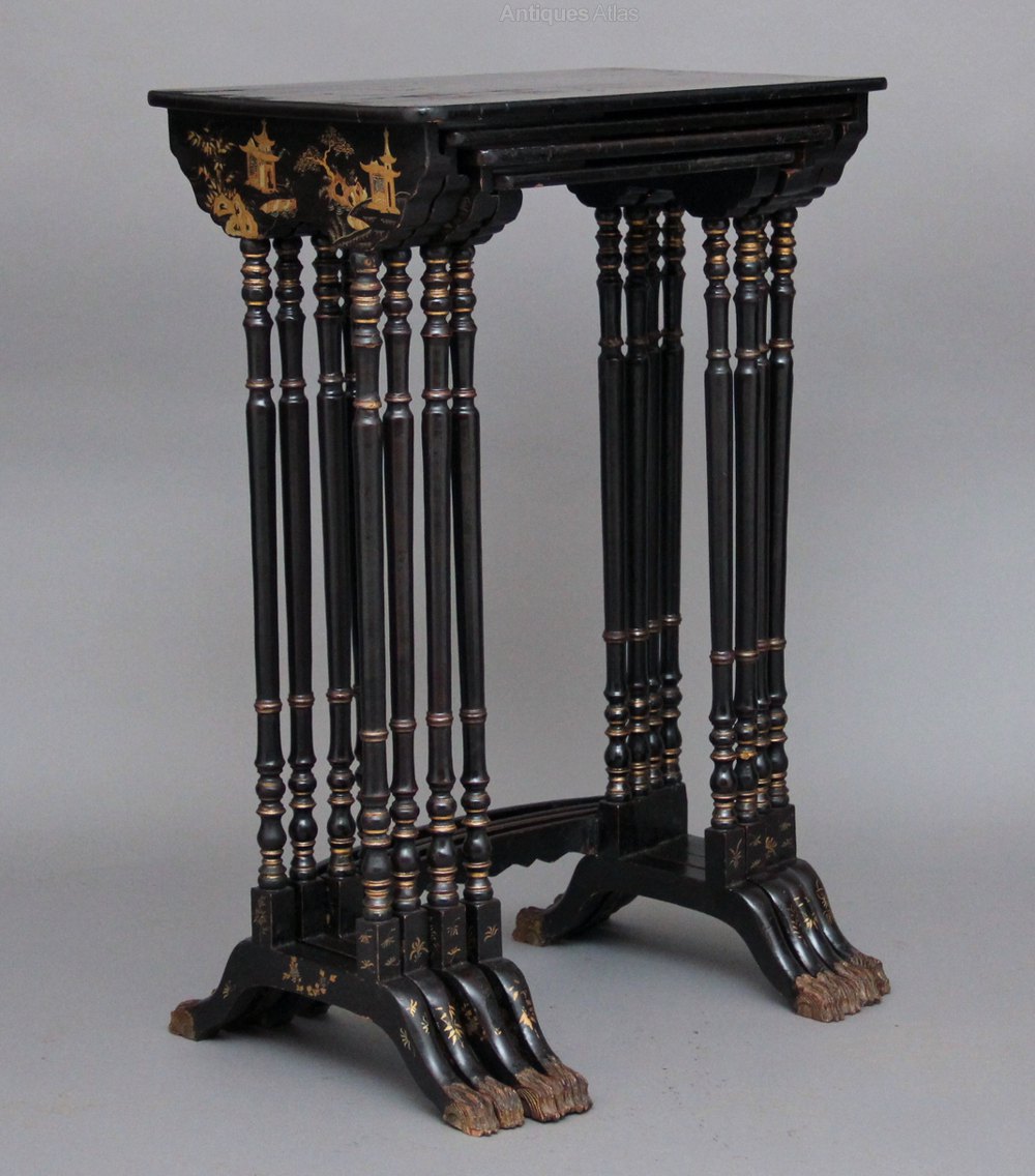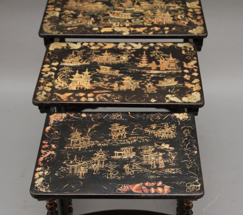 Antique Nesting Table Trio, English, Japanned