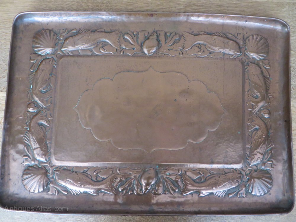 W.A.S Benson copper tray by Heywood Sumner