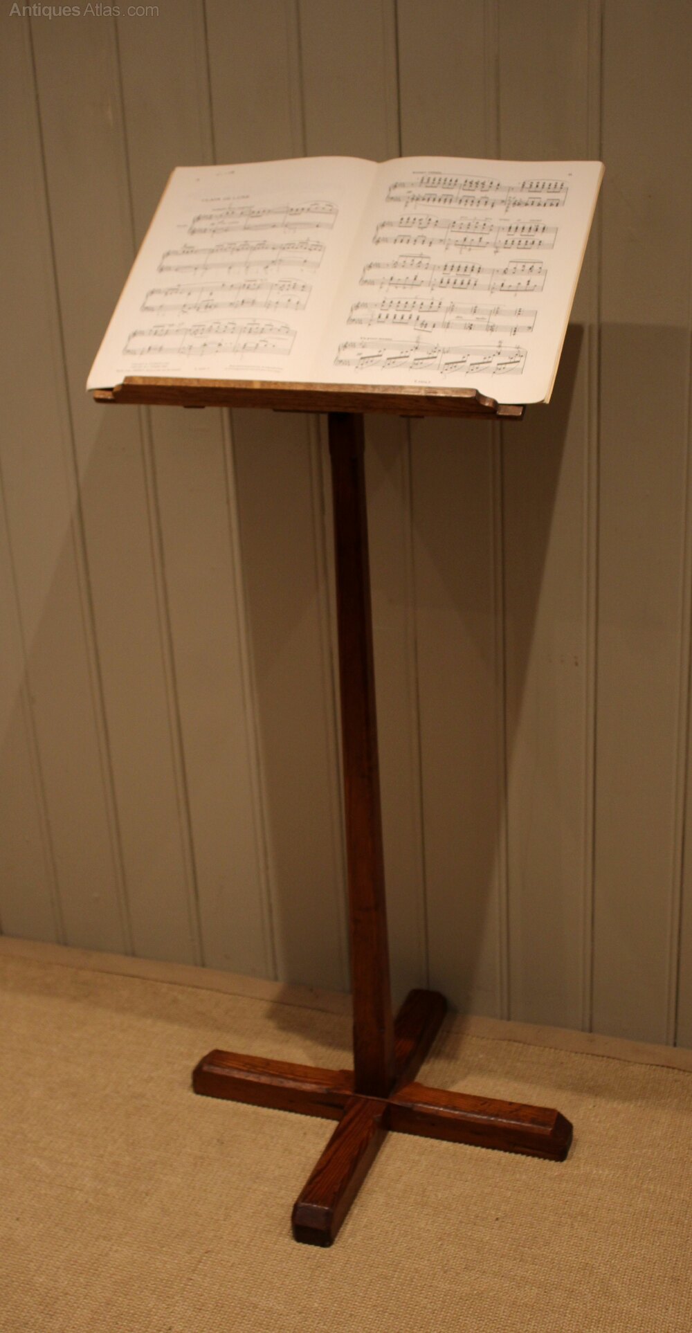 Early 20th century lectern having an oak top , supported on a pitch pine stand. Could be used as a music stand as well .