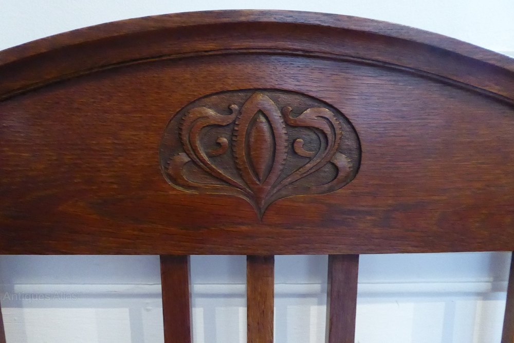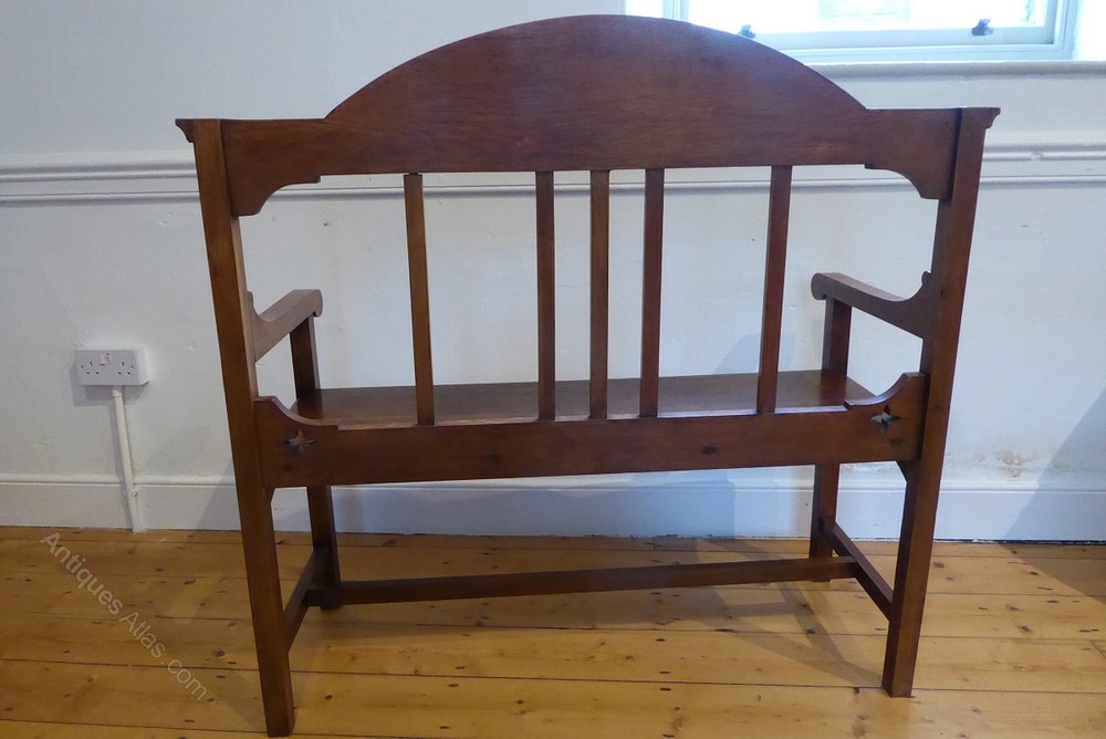 Pair of 19thc oak hall benches by JAS Shoolbred