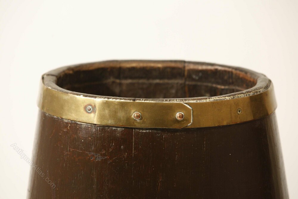 Oak Barrel Umbrella Stand, Brass Braces, 19th C