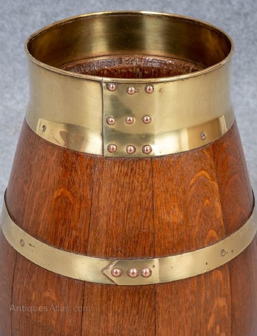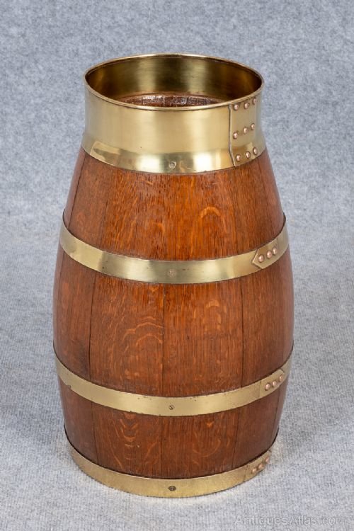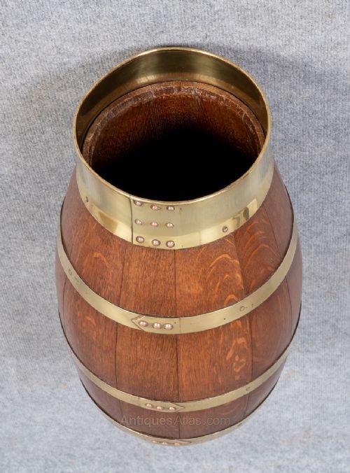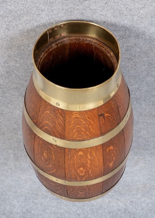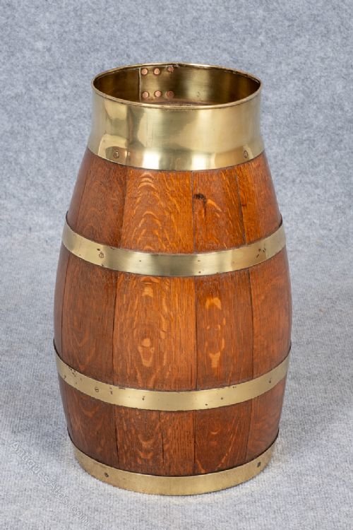An attractive Edwardian oak coopered stick stand of barrel form with brass top and brass straps. Condition:- Very good, fully burnished and waxed. Dimensions:- Height…19’’/ 48cm. Width & Diameter…11.25’’/ 28.5cm. Delivery to most of U.K. mainland £38.