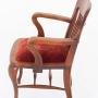 The chair features shaped arms with well-formed supports, complementing its classic design. The back is constructed with vertical slats, while the seat is generously upholstered for added comfort.