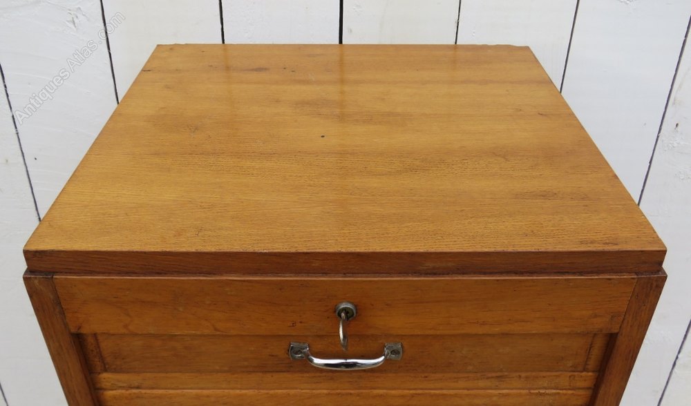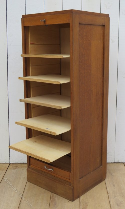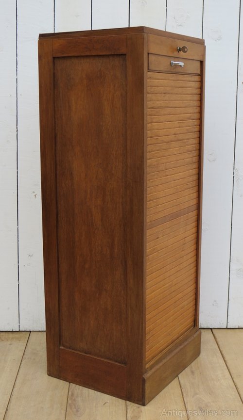 Oak French Tambour Front Filing Cabinet