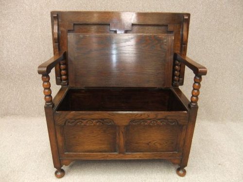 A stunning example of a solid Oak circa 1920s Oak Monks bench. A convenient and useful piece of antique furniture, providing excellent storage for shoes, boots, bags etc. The bench can easily be turned into a small side table ideal for a telephone, photo frame etc, or used as a seating option in any hall, conservatory etc. This item is in excellent condition with very little wear and tear. An ideal piece to complement any period interior.