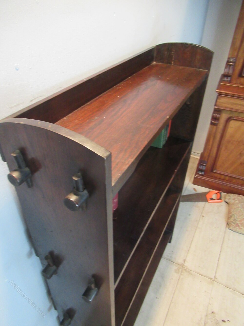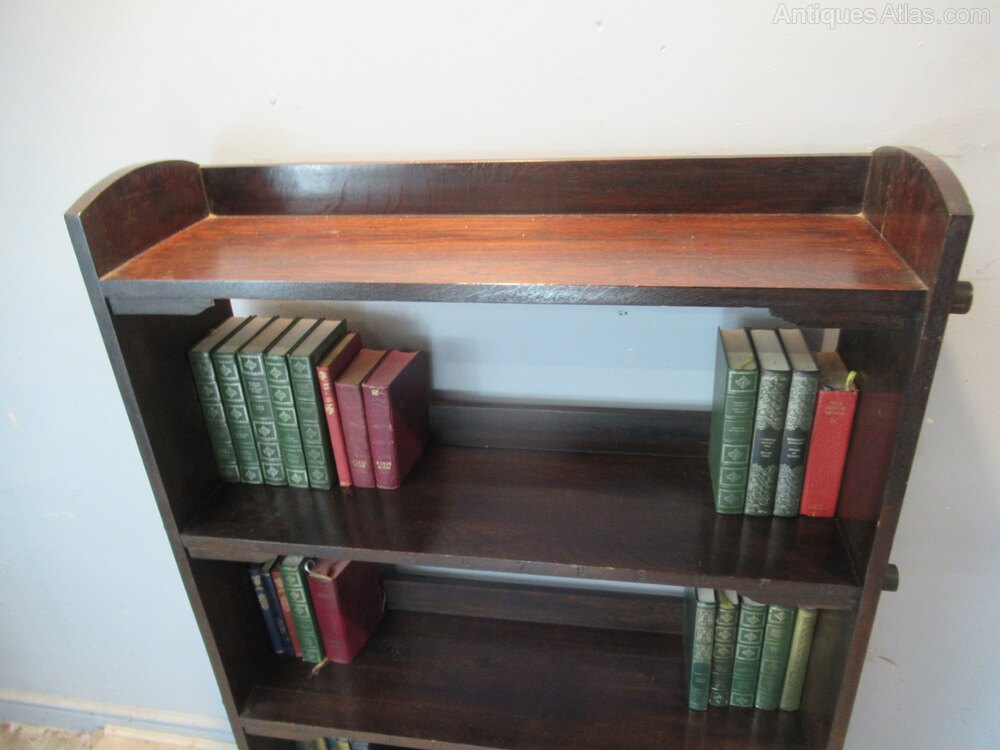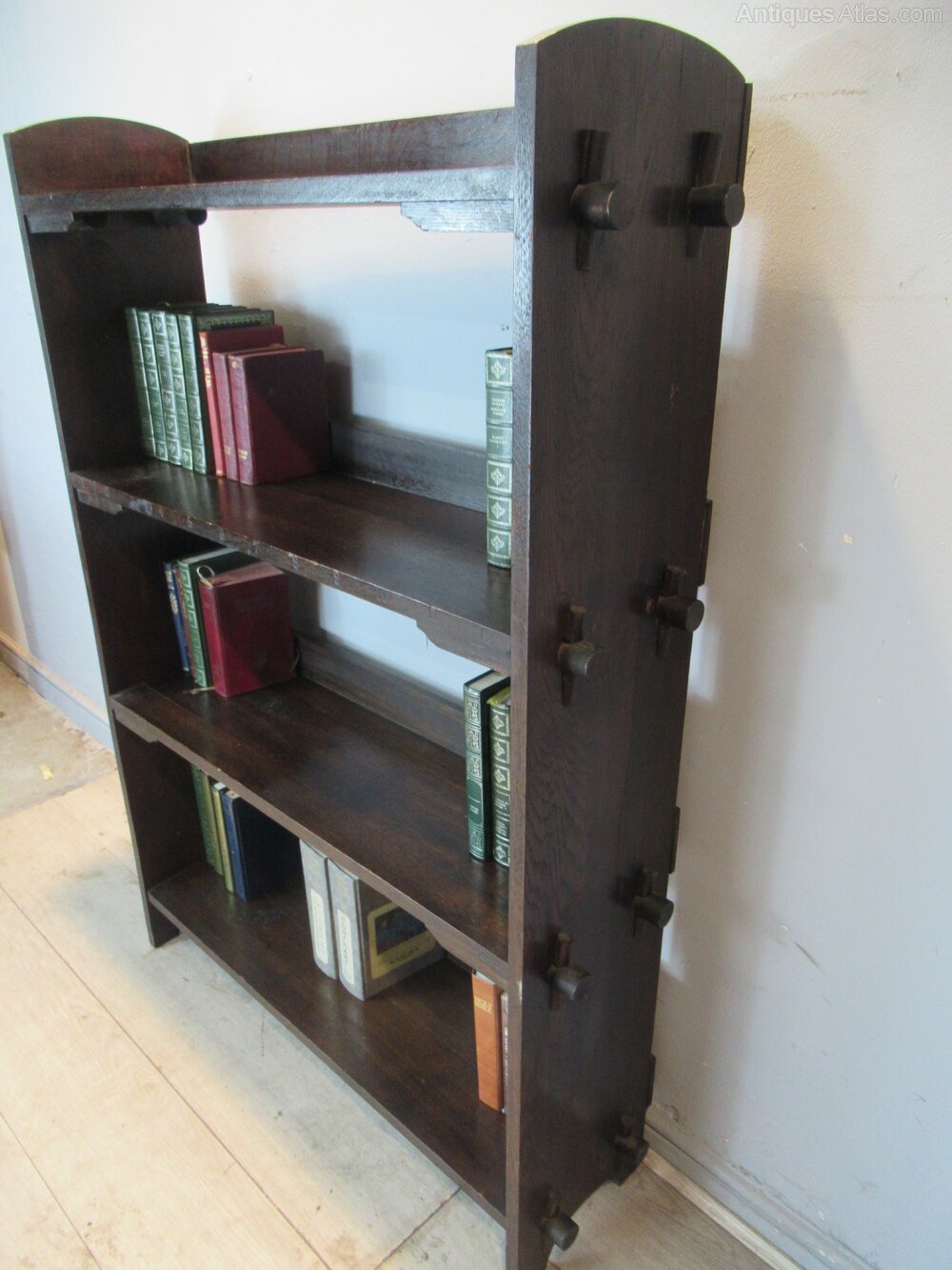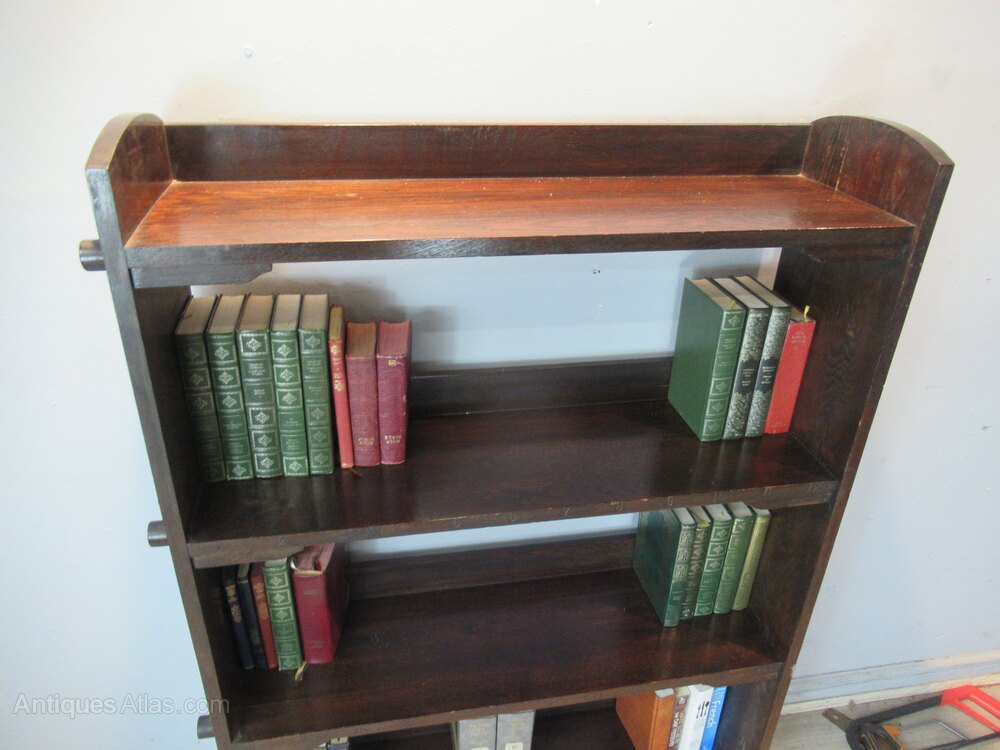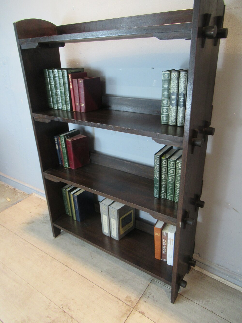 Edwardian period oak open bookcase , a very solid made piece with end peg construction .dating from around 1910.