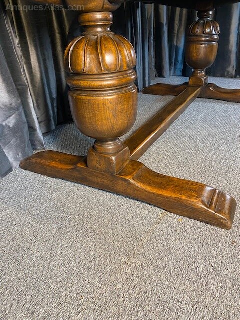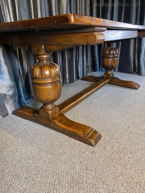 This wonderful oak refectory table which is very sturdy, with carved supports , joined by a low stretcher bar below. The table would be ideal for a kitchen or as a dining table all in a beautiful honey colour , this table is ideal for everyday use or just for entertaining .