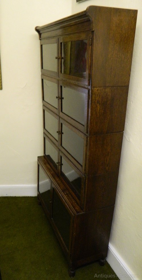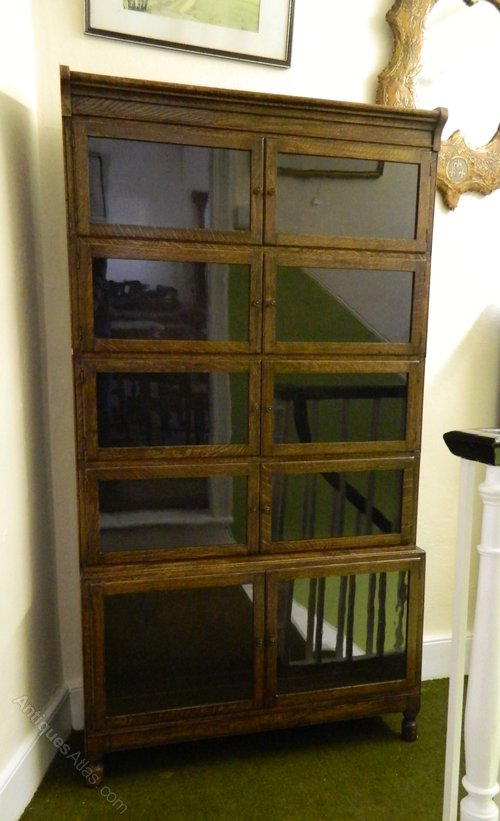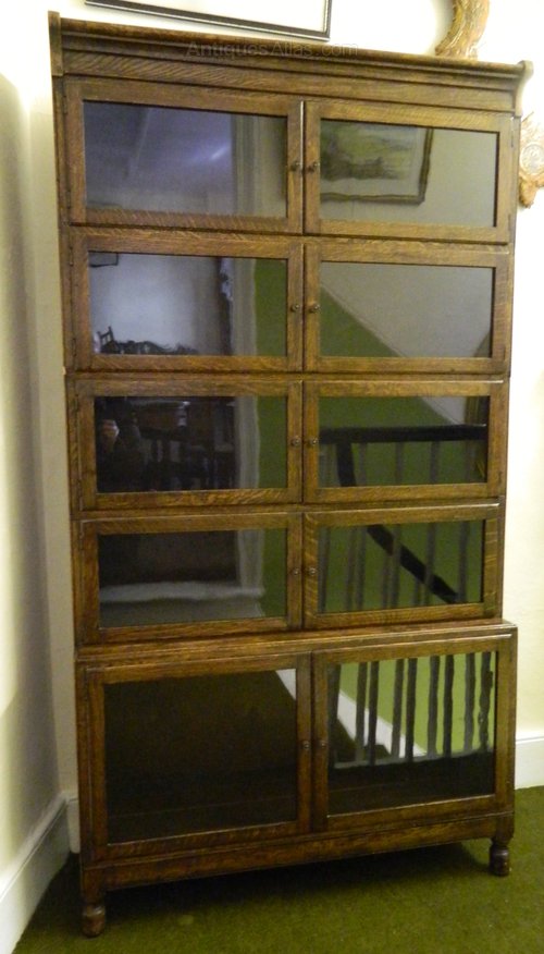fine example of an oak stacking bookcase by Minty of Oxford comprising of five sections, all with double doors, standing on turned feet.