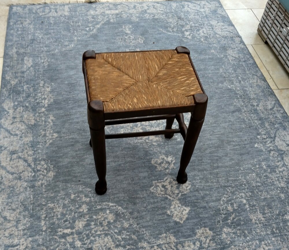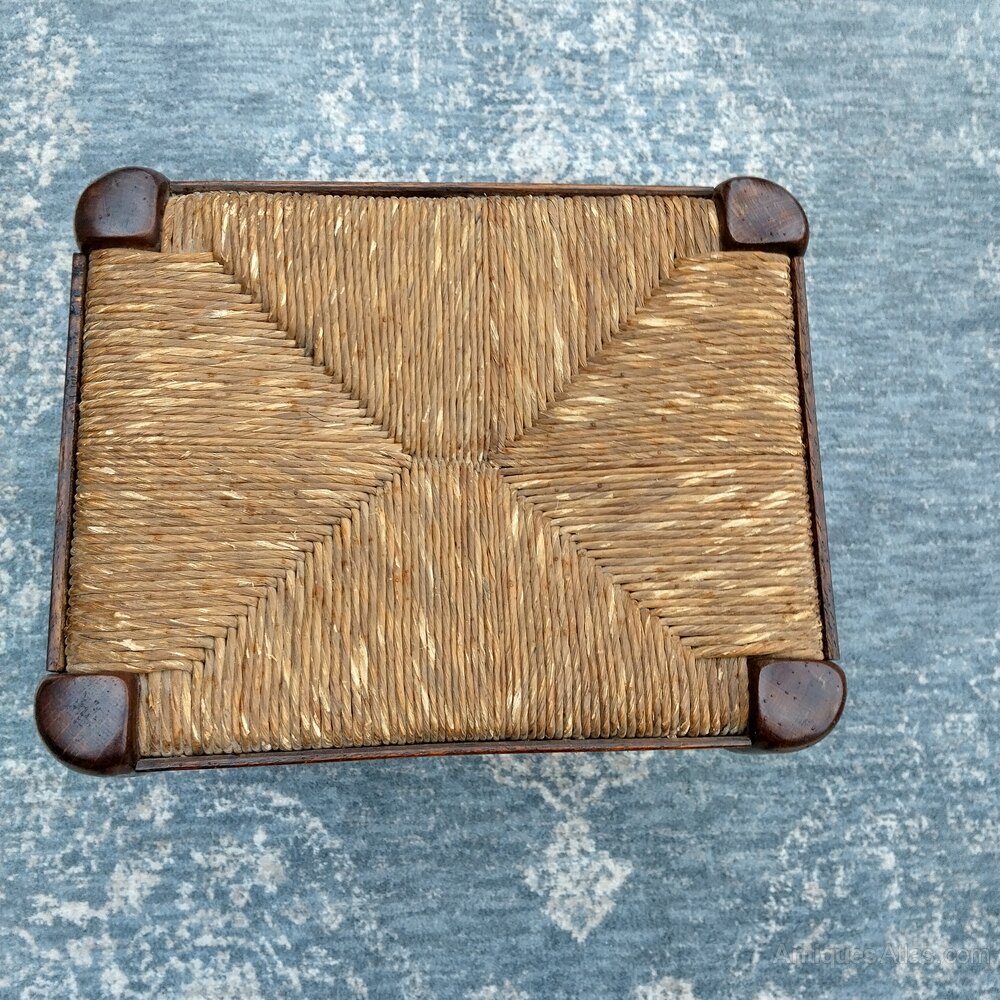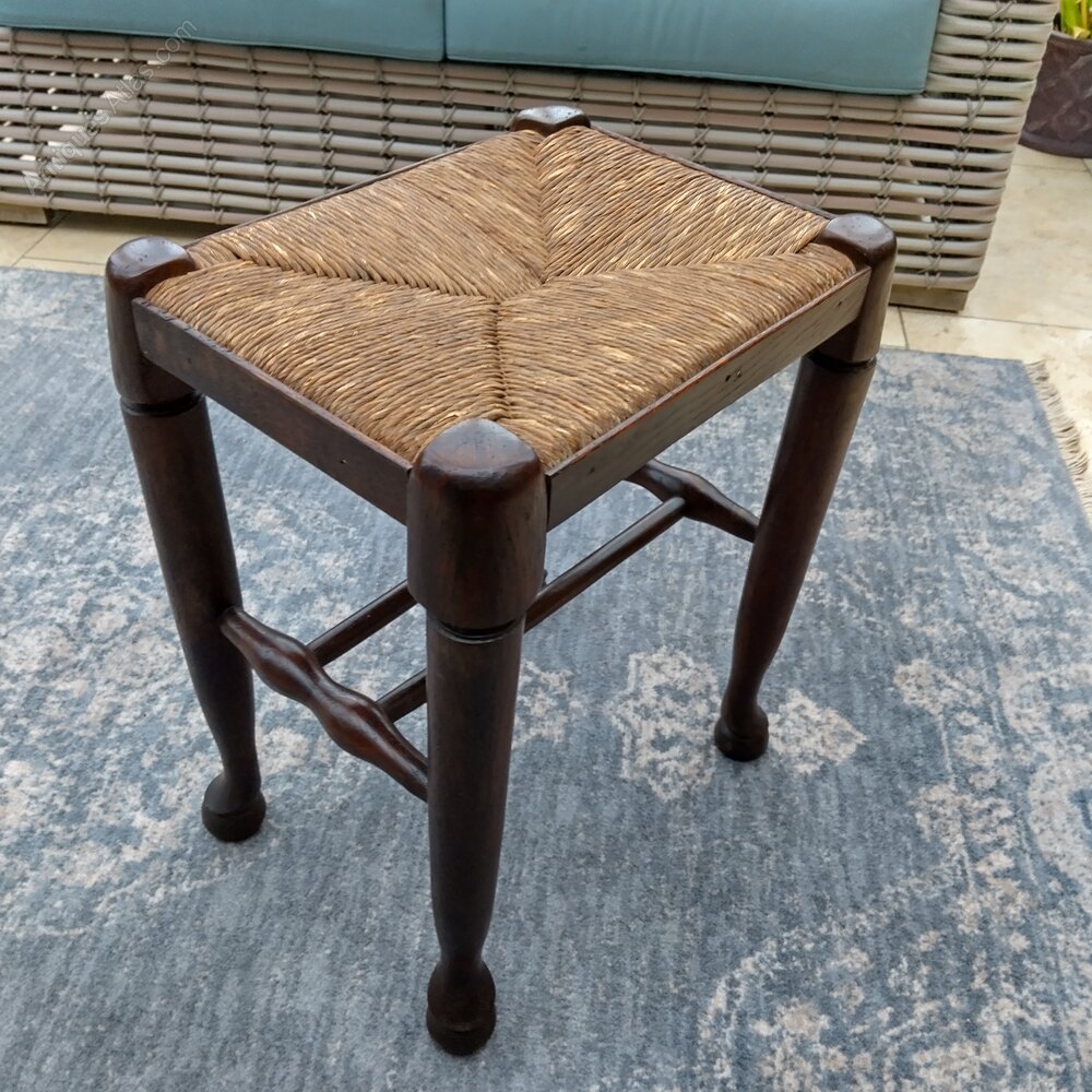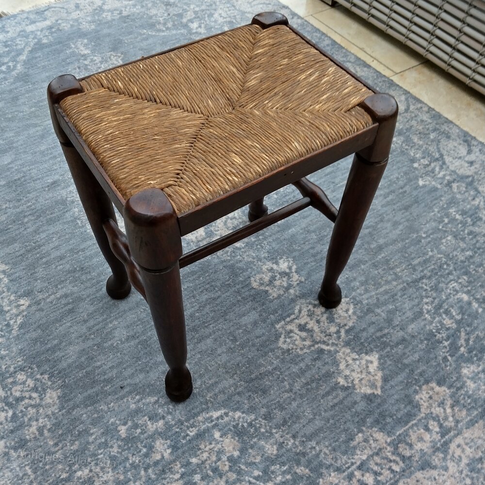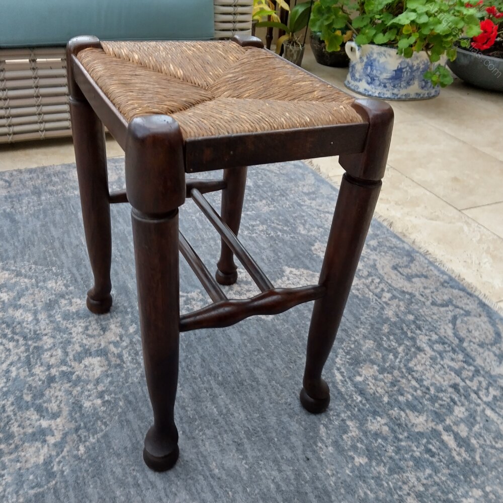 A pair of stools in Oak with rush seats. One is in almost perfect condition the other does have some rubbing on the rush but minor. They are both sold and have tidy wood condition. They have the twin turned support stretchers and the pad feet. We have a single one listed for £130 but the pair can be a highly competitive £200 for both. Pairs normally command a premium of course.
