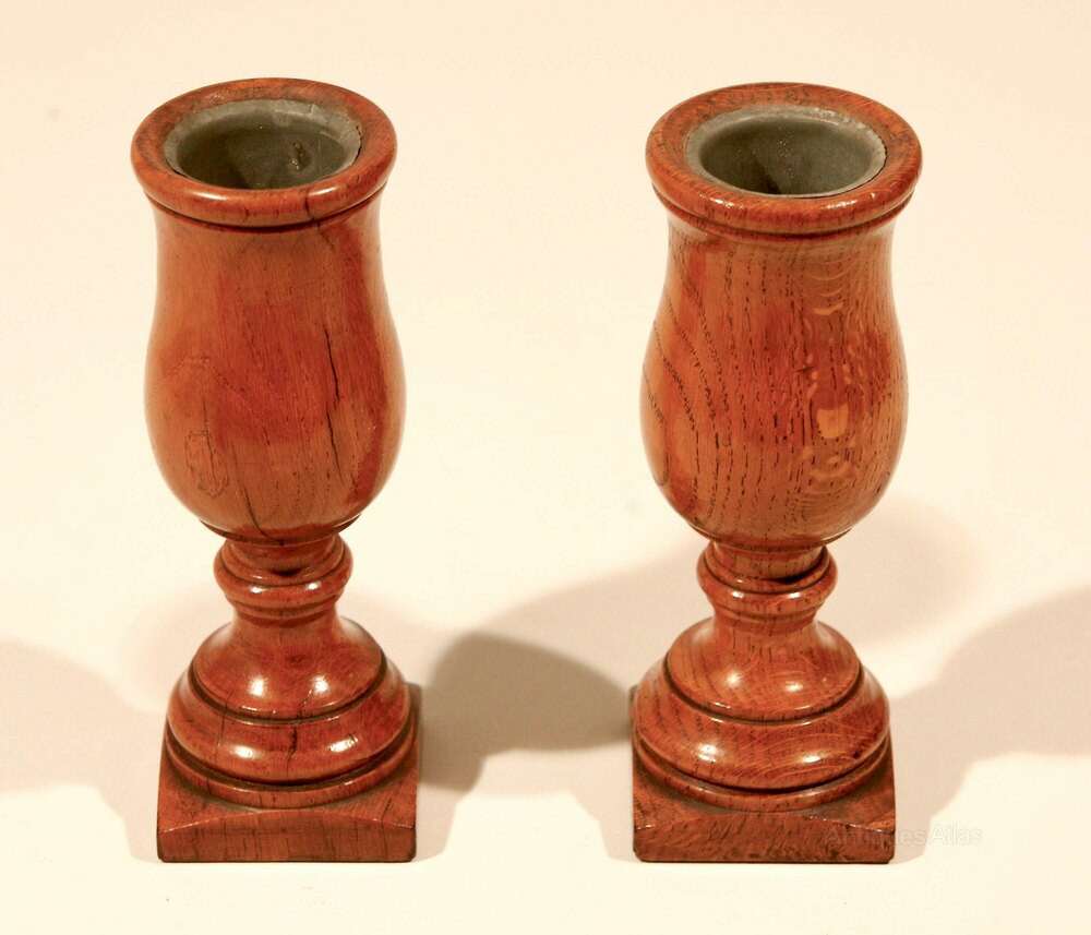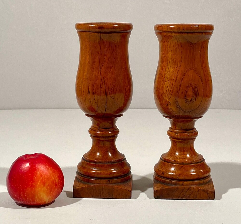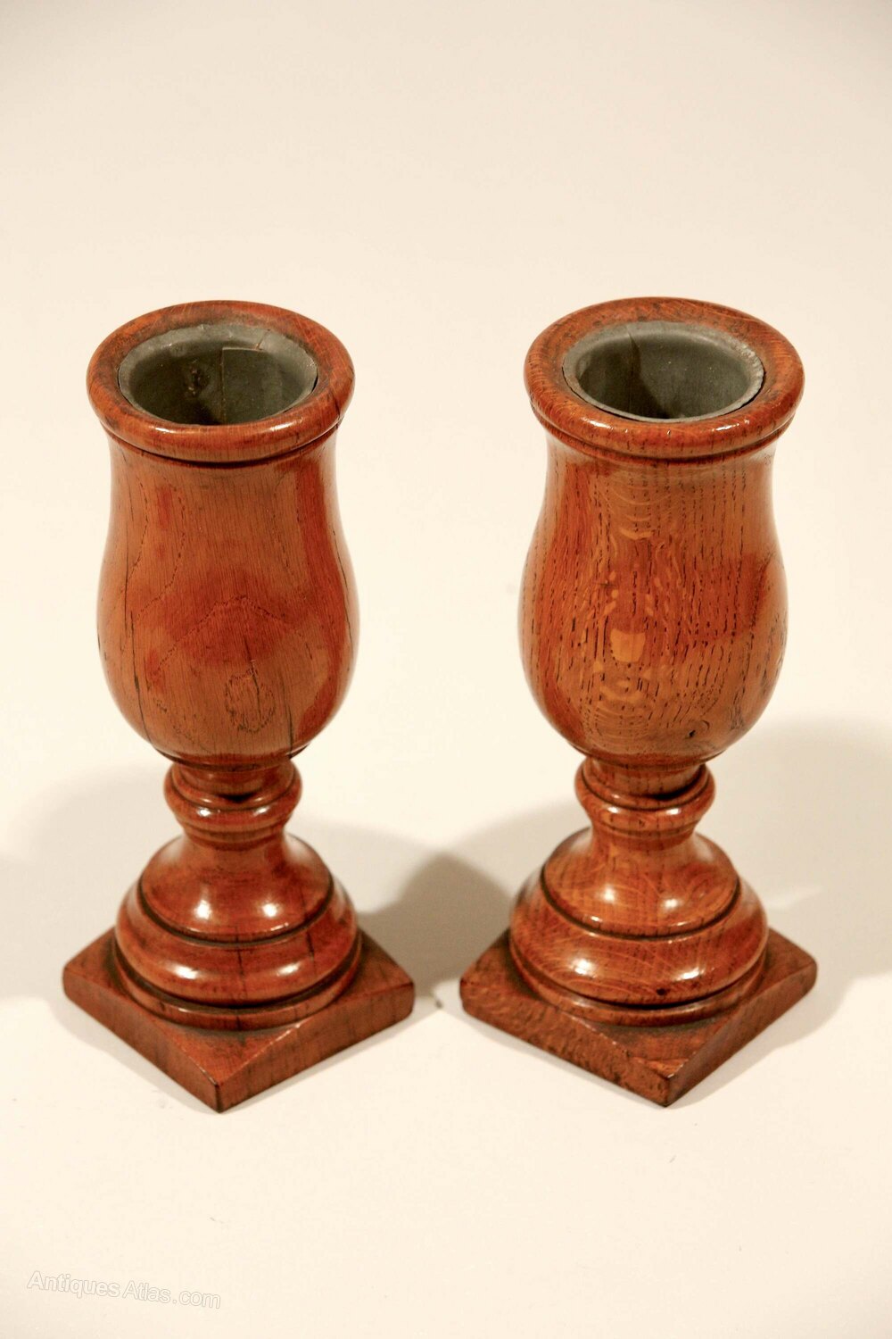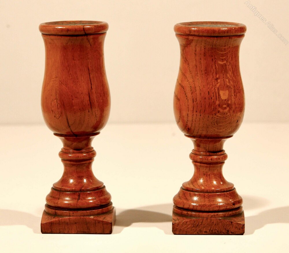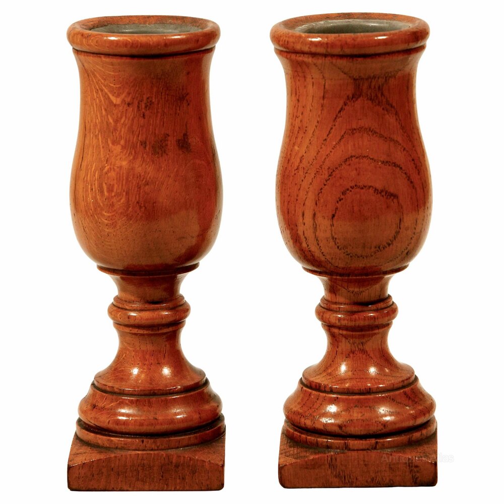 Oak Turned Urn Stem Spill Vases, Pair C1880