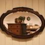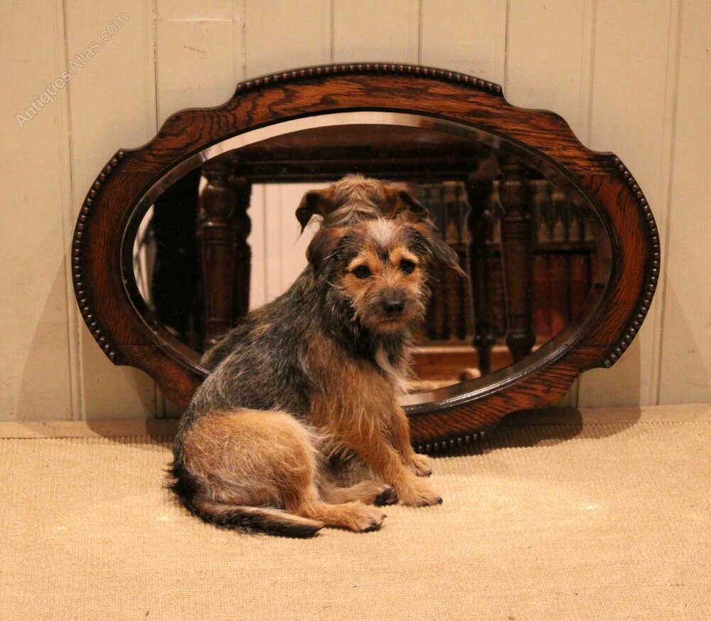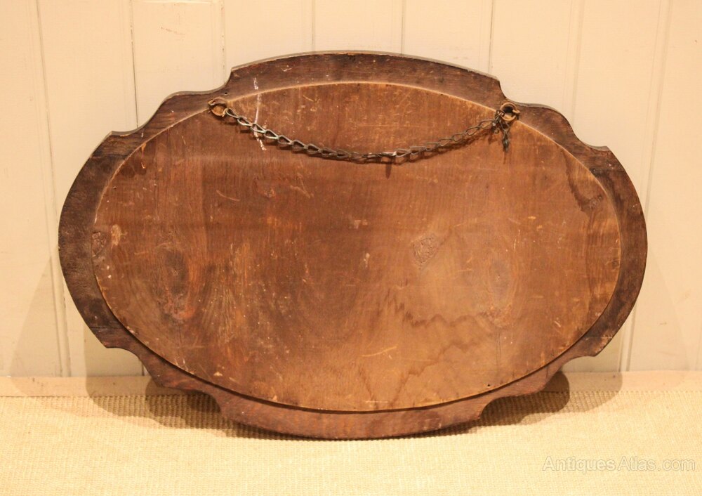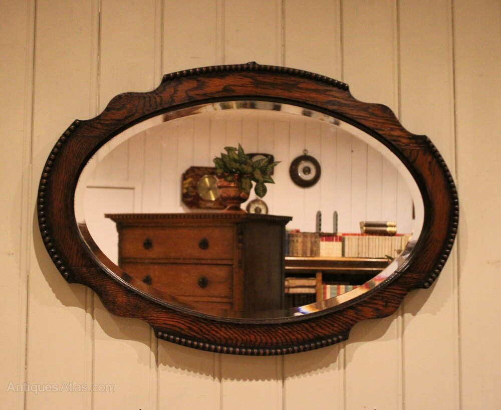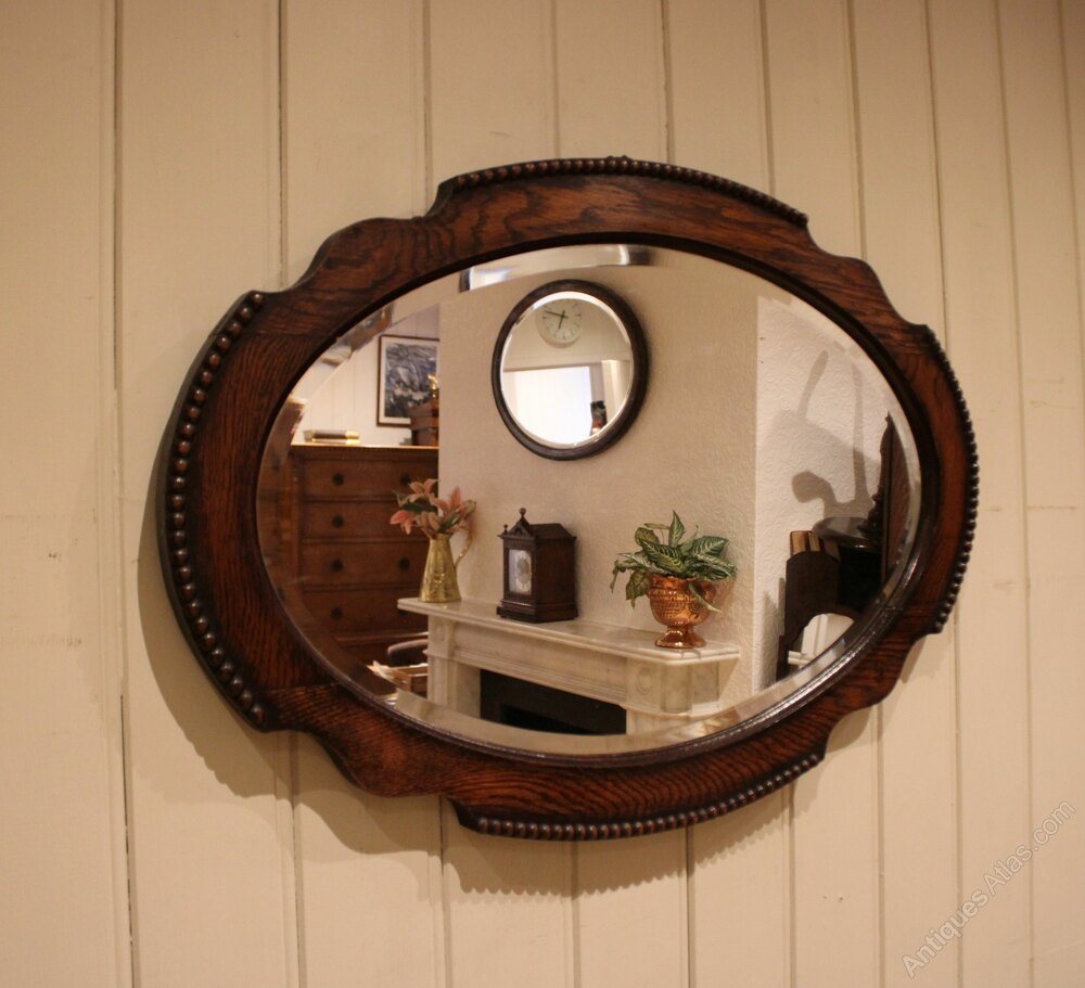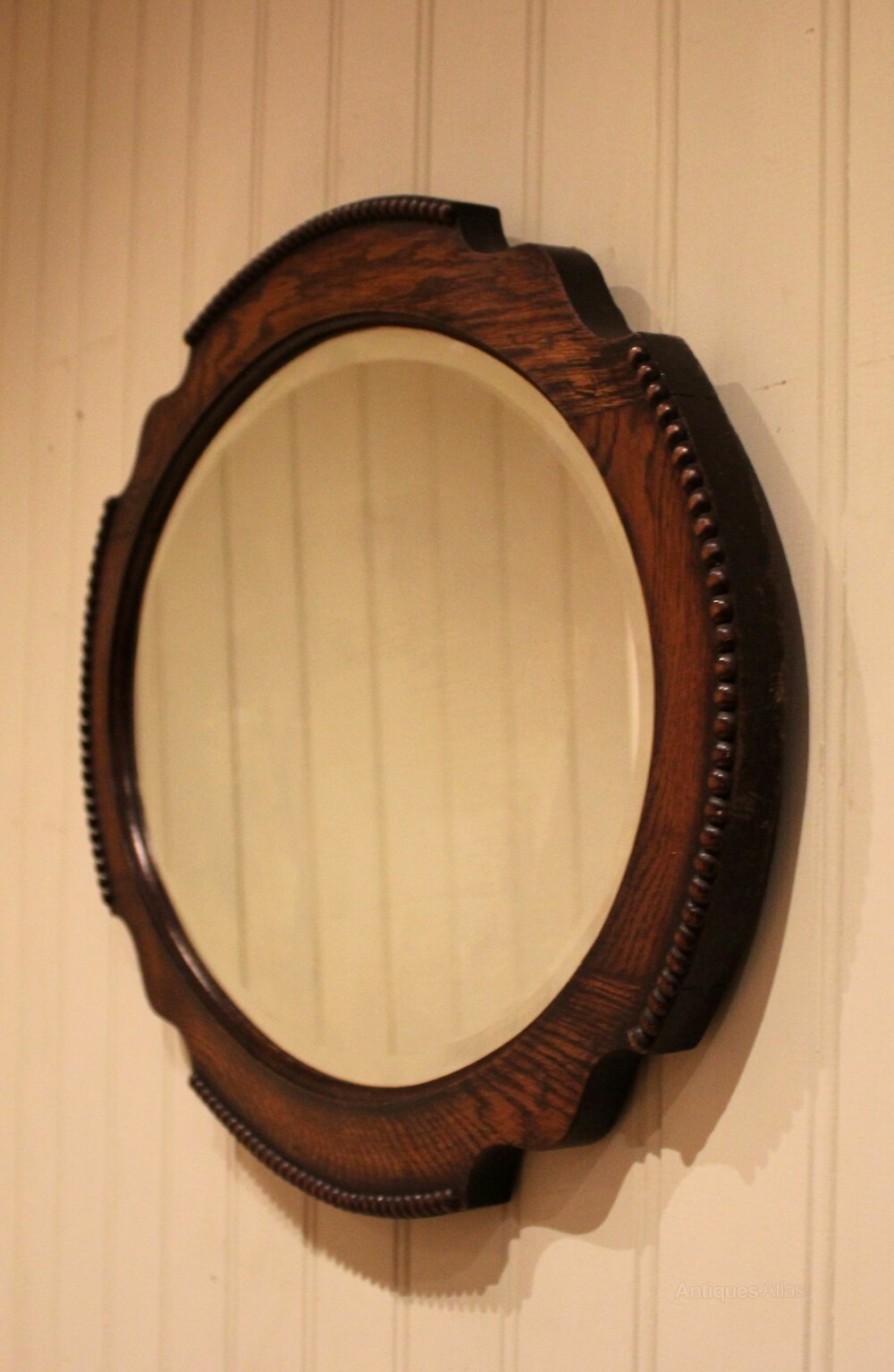 Oak oval wall mirror having a beaded edge , with an inset bevel edge mirror.