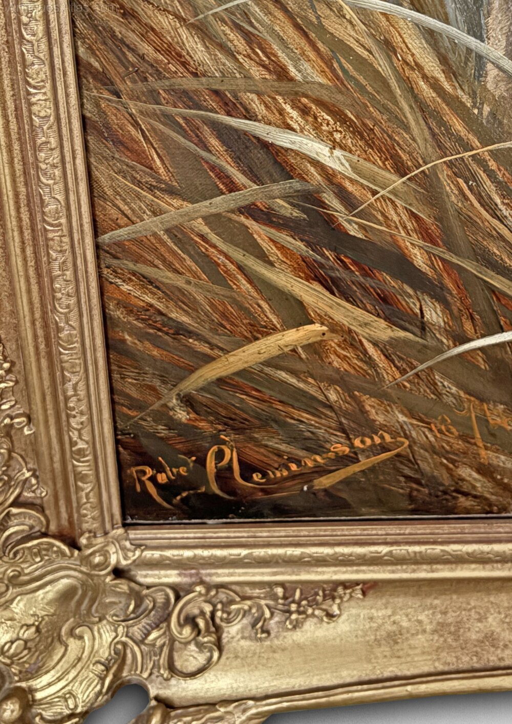 Cleminson was a painter in oils of landscapes, Highland game and sporting dog paintings and it his animal and dog paintings for which he is best known. He no doubt found a ready market for his paintings which are as popular today as they were during his lifetime. He flourished from about 1864 until his death and exhibited 10 works at the British Institution which was established as a rival to the Royal Academy, at Boydell”s Shakespeare Gallery in Pall Mall, London. He exhibited further works at the Society of British Artists, Suffolk Street, London. He is renowned for his excellent brush work and exceptional gift for capturing the moment in his paintings.
