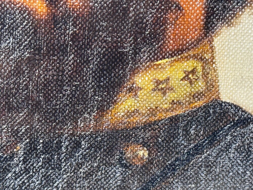 The painting reflects mid-20th century historical revival practice while consciously preserving 19th-century academic conventions.