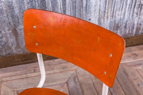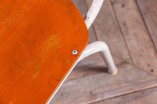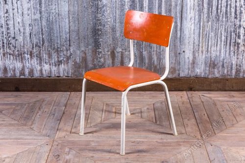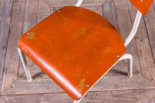 We have these wonderful industrial chairs available in four colours – blue, orange or green seats with a white frame, and green seats with a green frame.