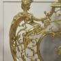 At the upper sides, classically styled female busts with carefully rendered coiffures terminate the outward scrolling arms, introducing an allegorical presence to the composition. Beneath them, winged mythological beasts—reminiscent of griffins—emerge amid dense acanthus scrollwork, lending movement and sculptural vitality. The lower frieze centers a shield-form cartouche framed by bead-and-reel and foliate detail, with additional pierced ornament descending in a balanced pendant arrangement.