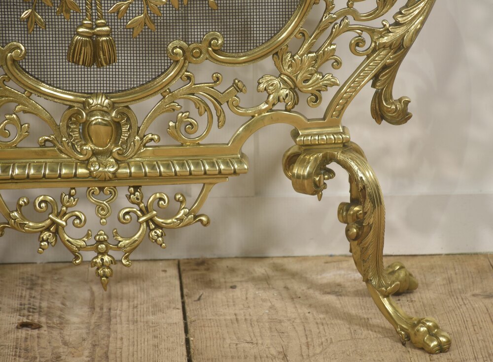 The screen stands on four cabriole legs enriched with acanthus carving and terminating in paw feet, providing structural stability while maintaining stylistic continuity with the upper ornament.