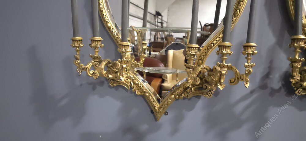 Florentine Pair Of Giltwood Antique Girandoles