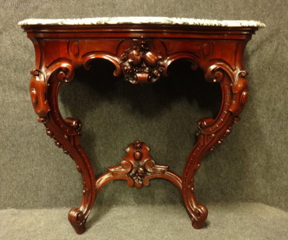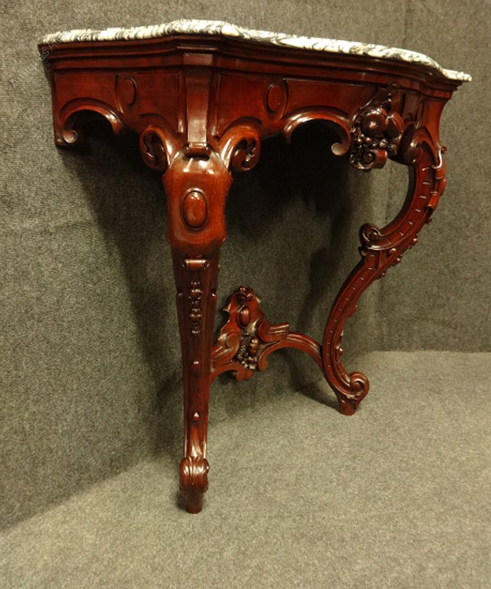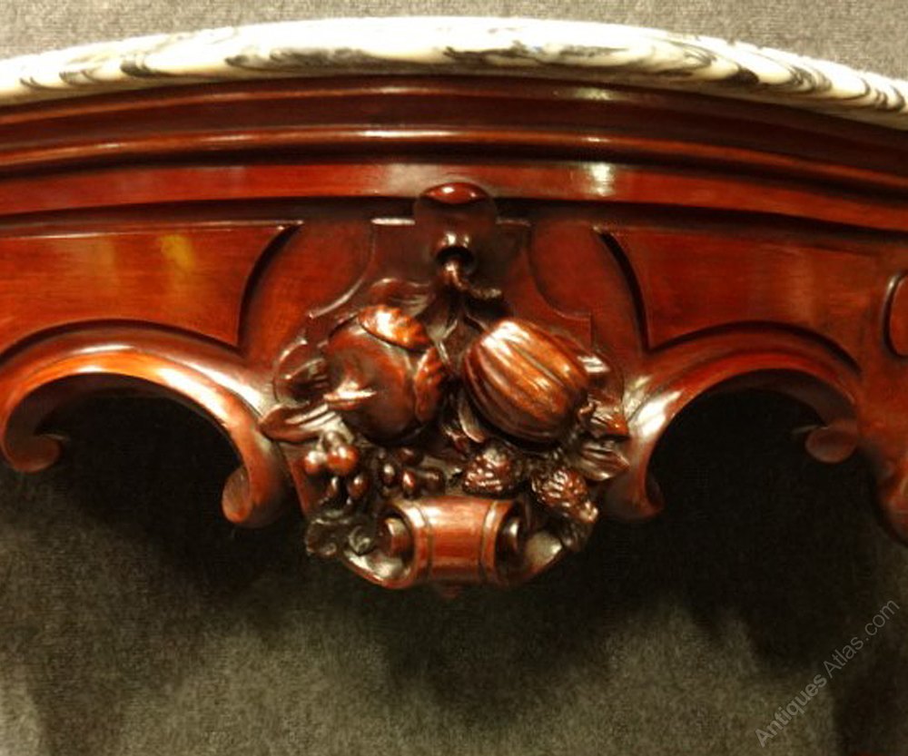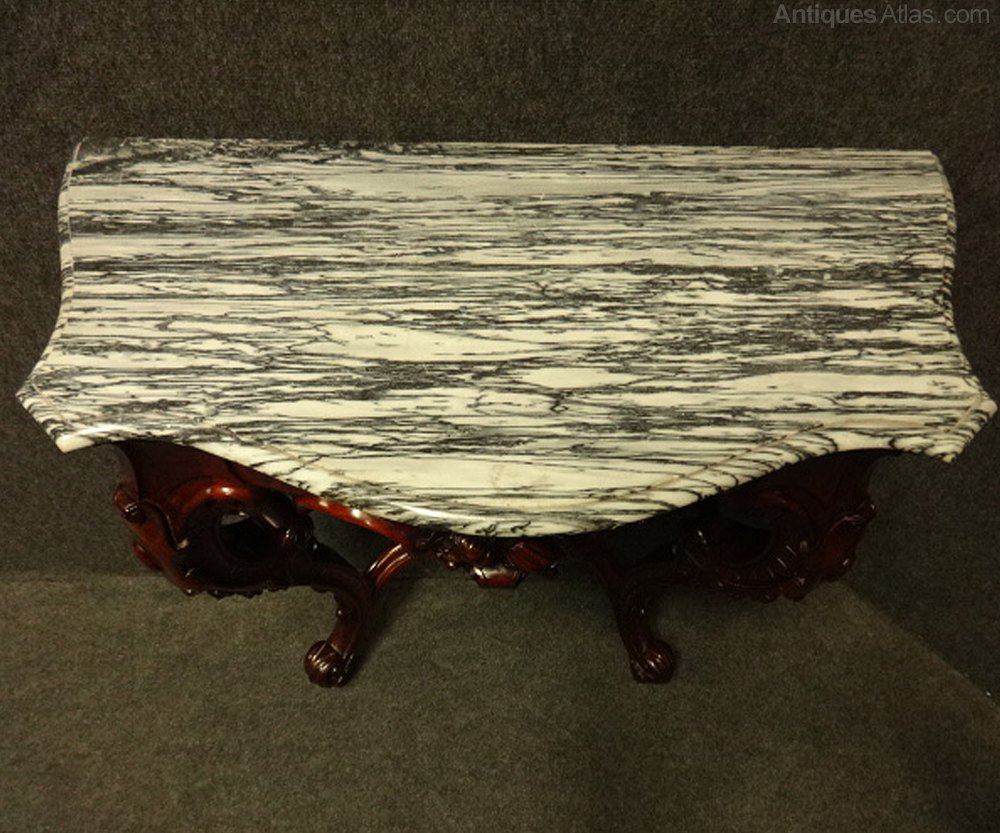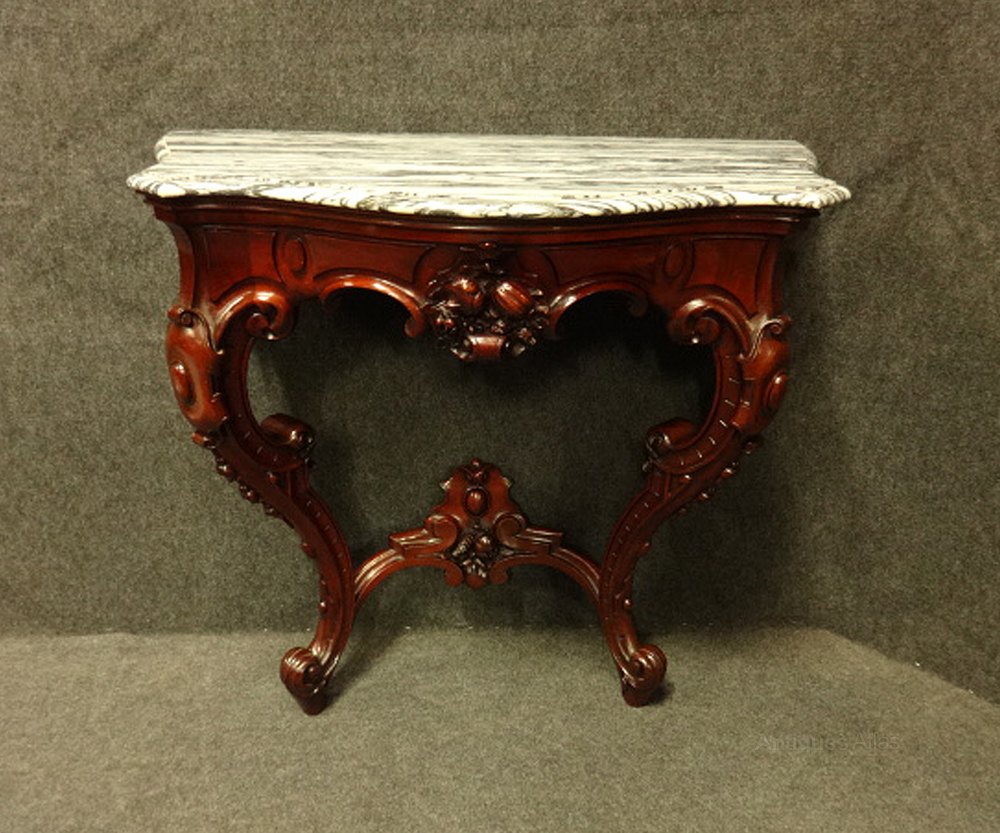 A beautiful mahogany Console table with serpentine front, carved detailing and black and white marble, in excellent original condition