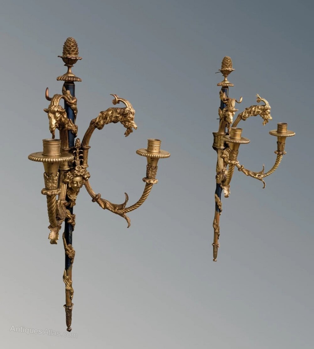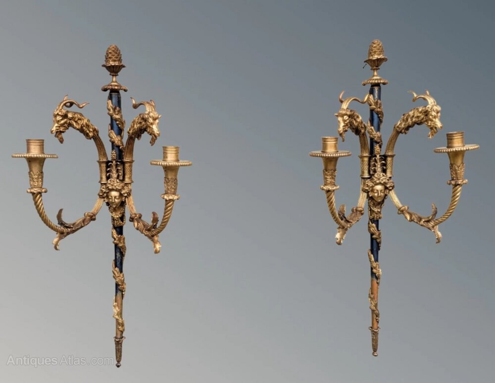 French Pair Of Bronze Antique Wall Sconces