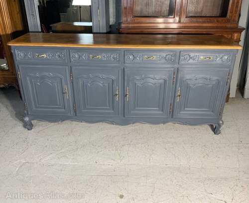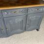 The base has been painted in farrow and ball Railings, it has been slightly shabbied and given a clear wax finish.