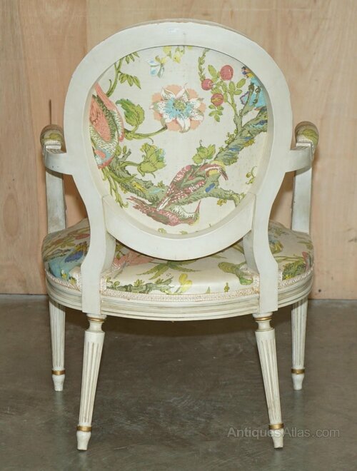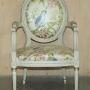 We have cleaned waxed and polished the frames, the fabric is old so its lightly stained on one with some fraying to the fabric, otherwise its in good order