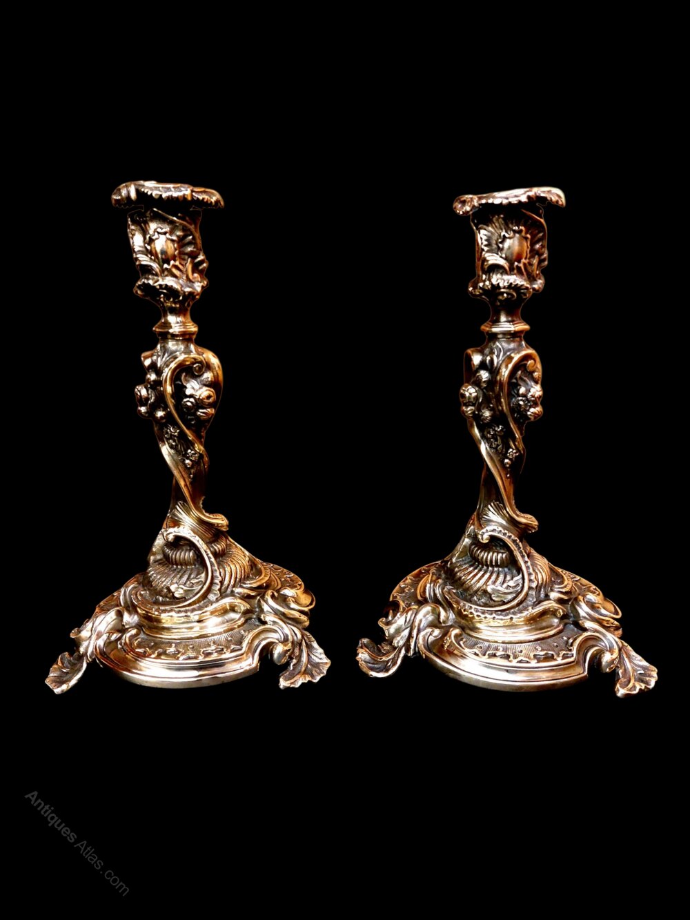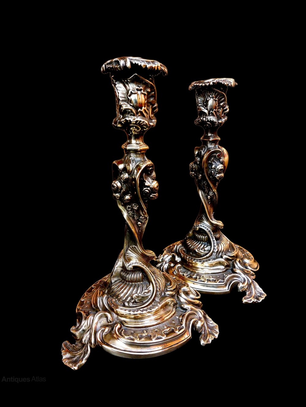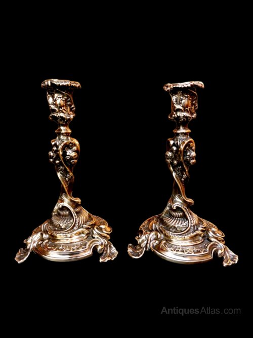 Pair 19thc Silver Form French Rococo Candlesticks