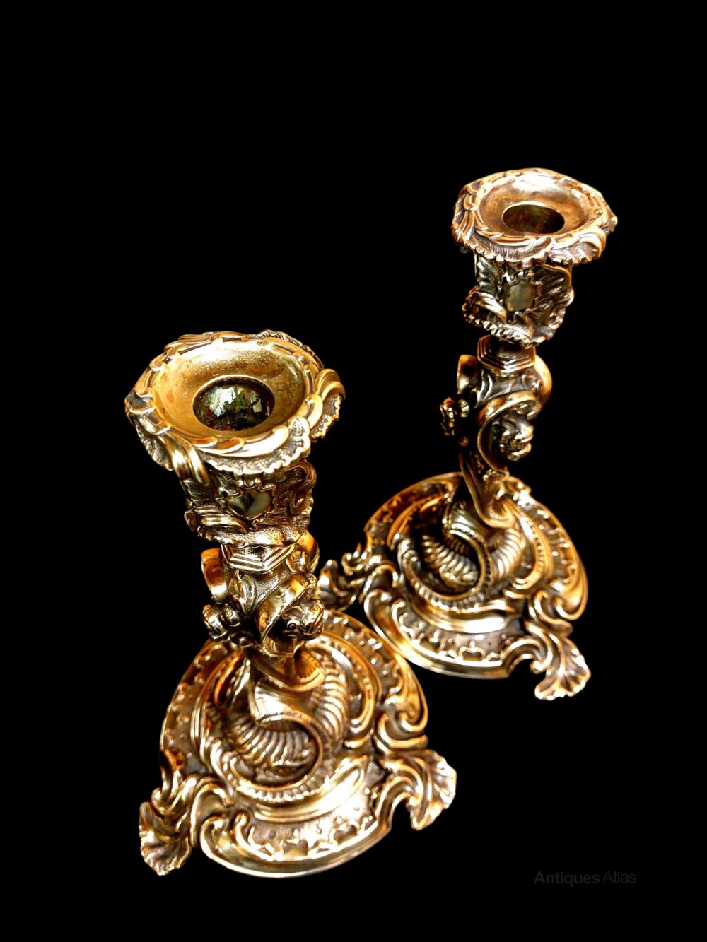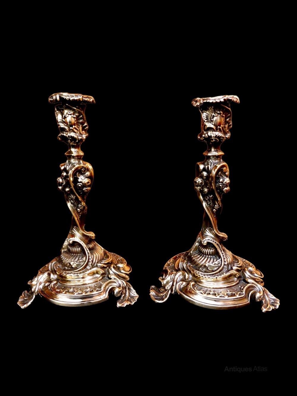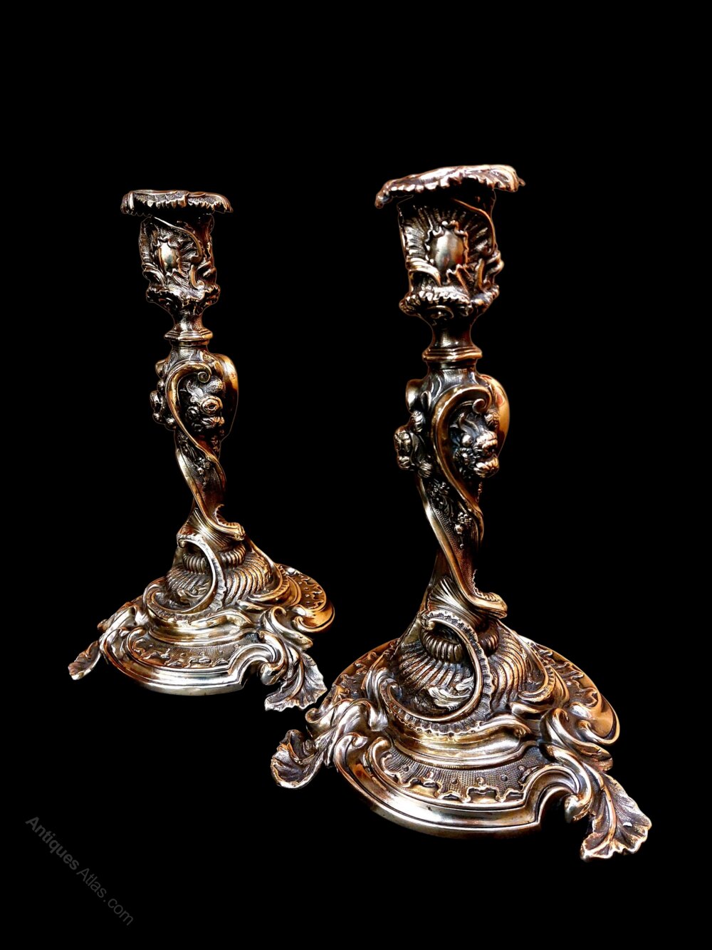 Pair 19thc Silver Form French Rococo Candlesticks
