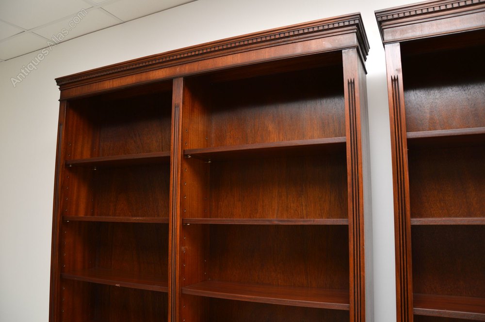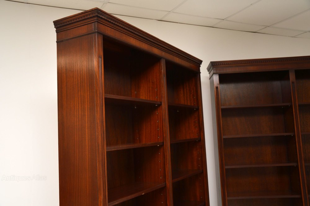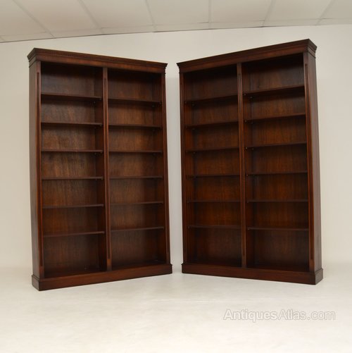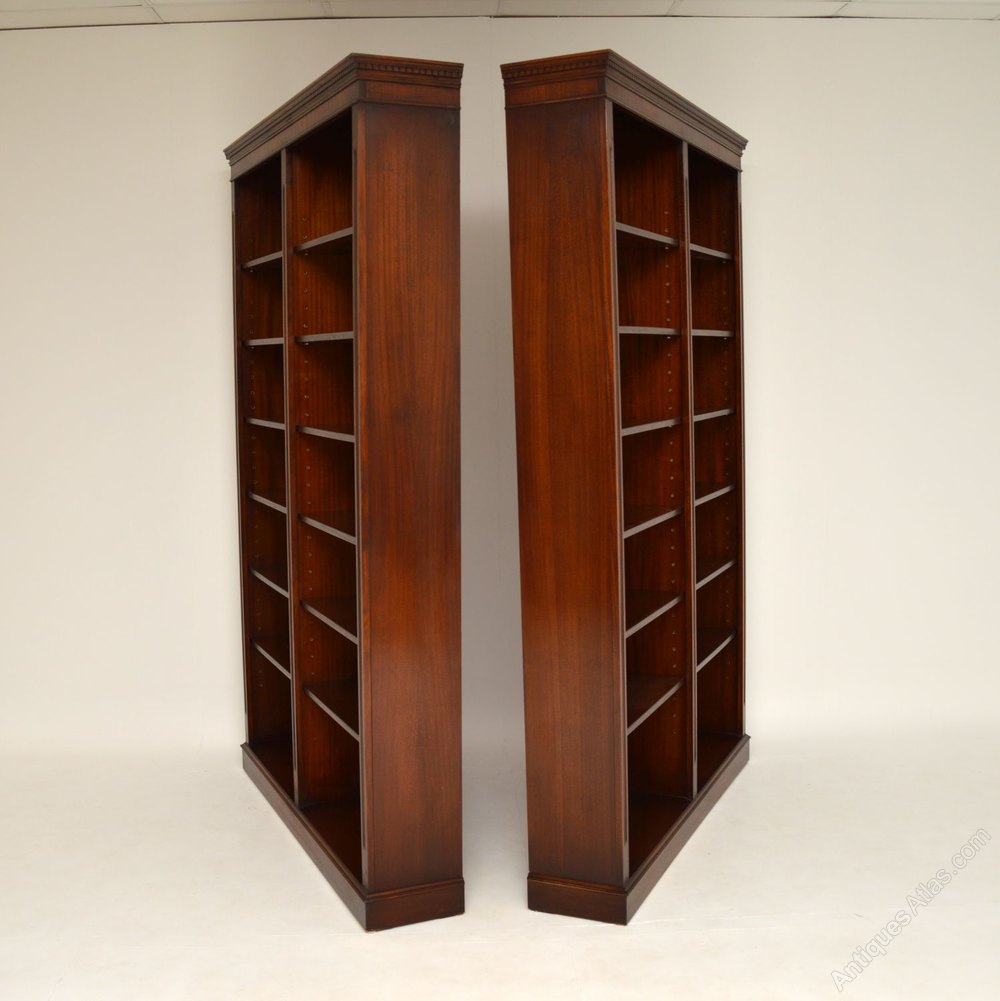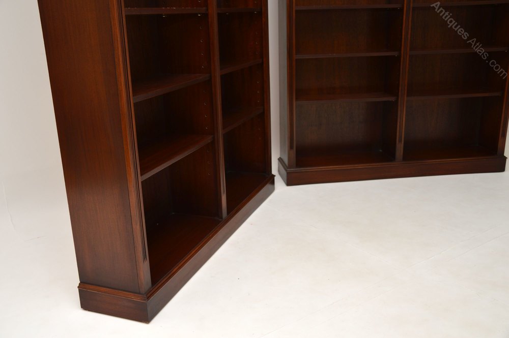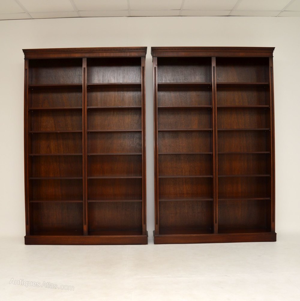 A smart and useful pair of large open bookcases in mahogany. These are in the antique Georgian style, they date from around the 1960’s period.