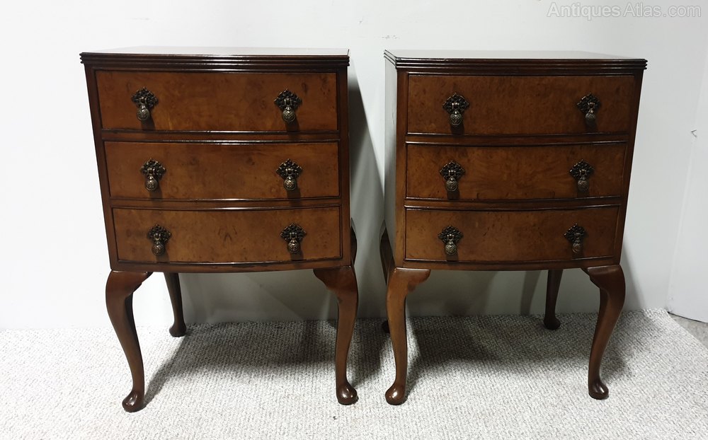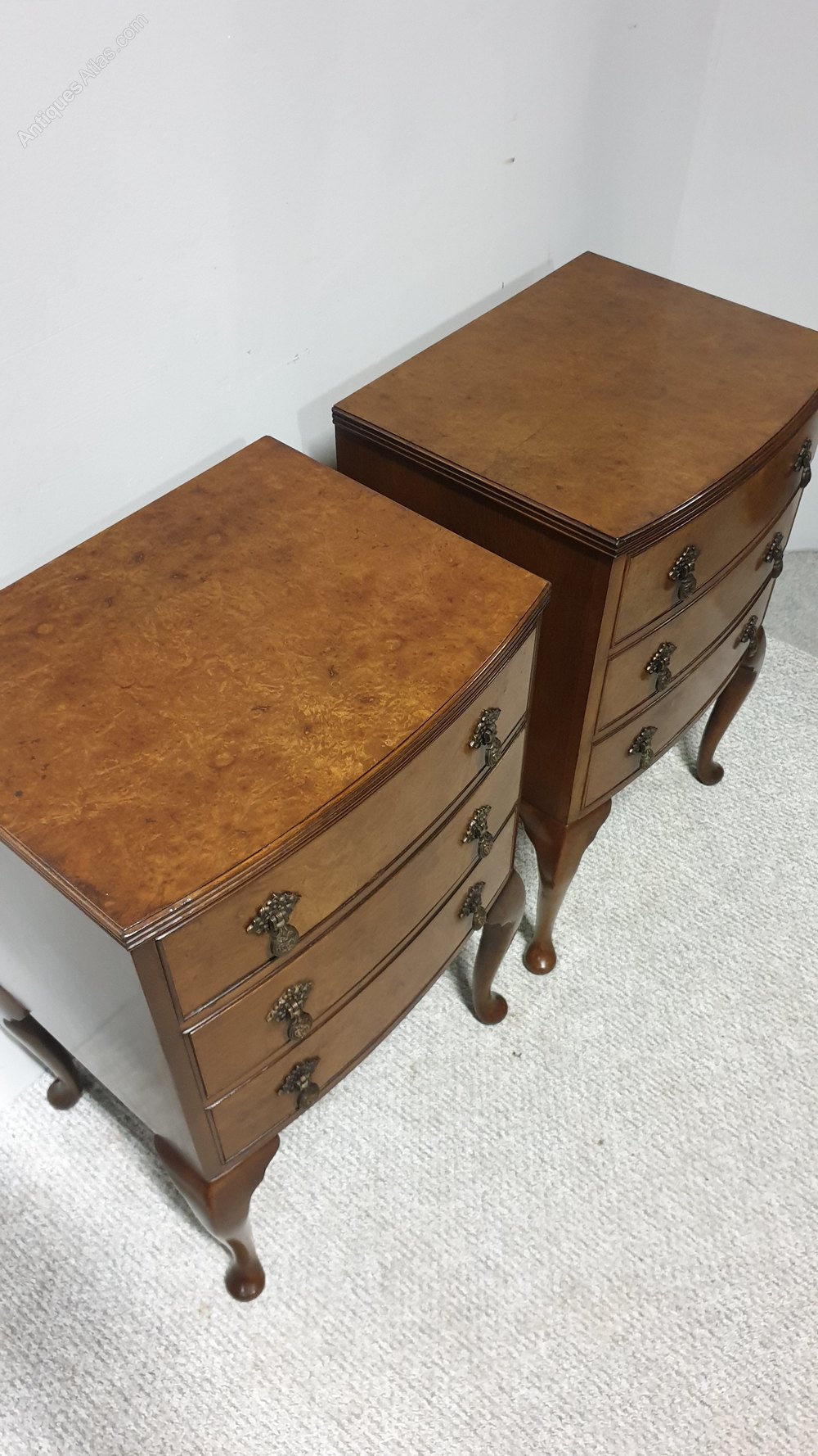 Pair Burr Walnut Bedside Lamp Chests of Drawers