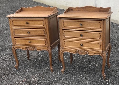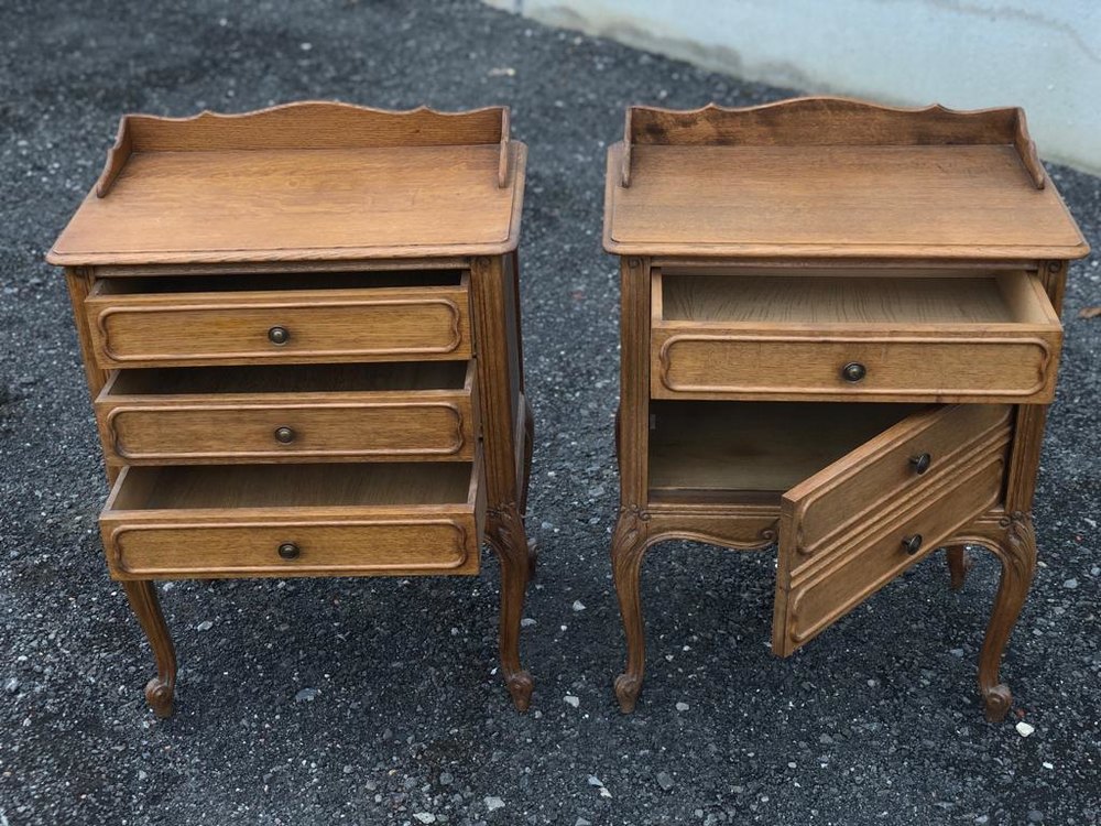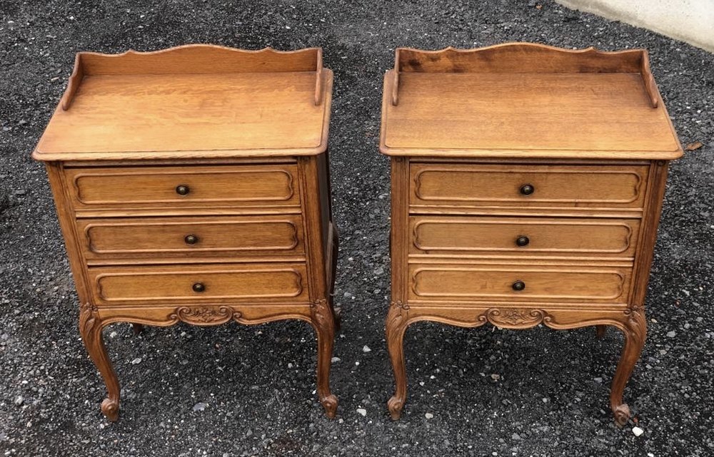 Pair French Oak Bedside Chests