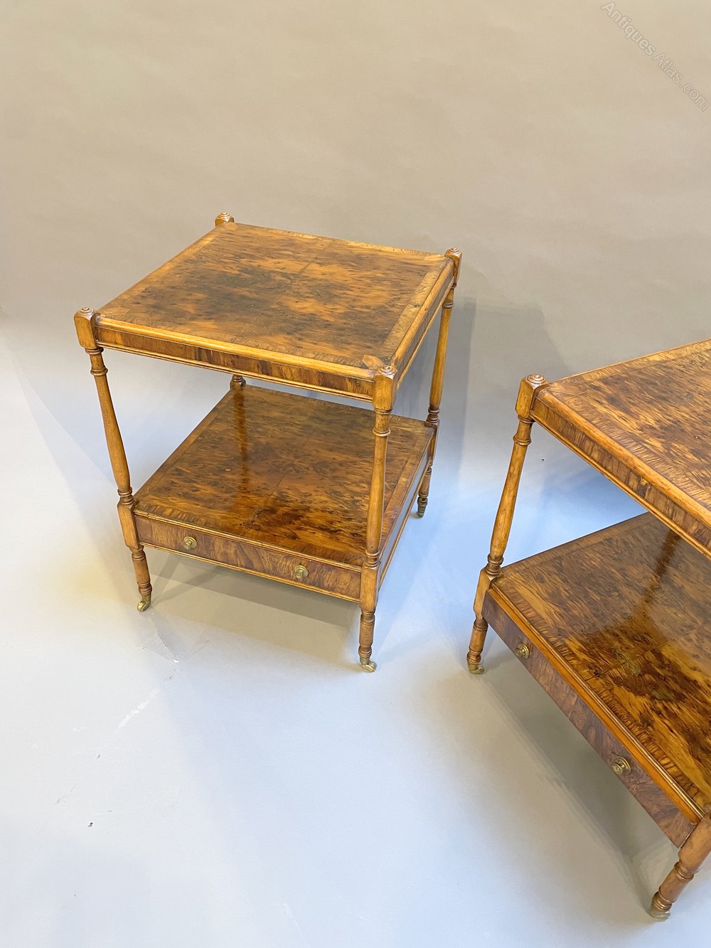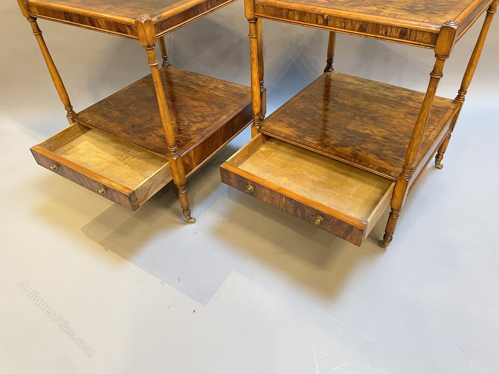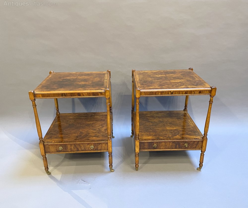 Pair Georgian design burr-yew side tables