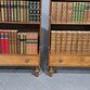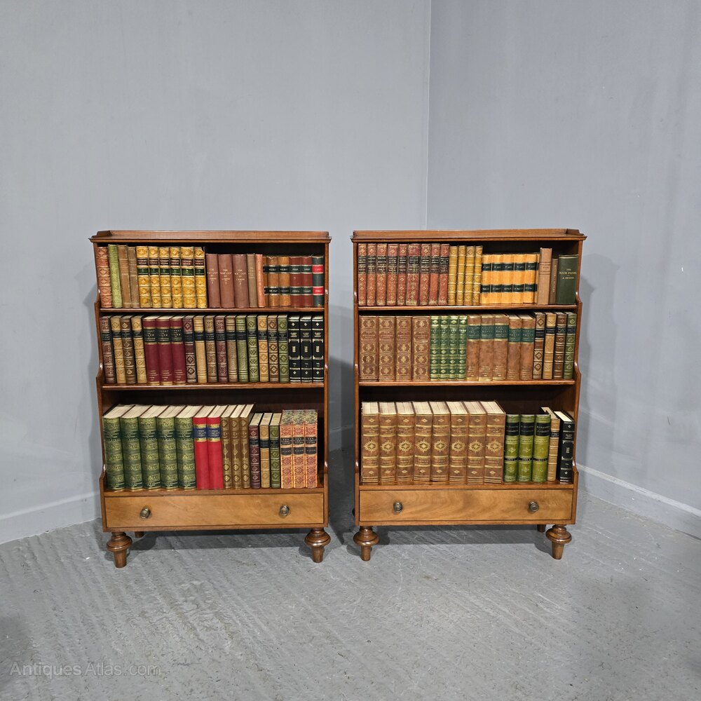 A superb pair of mahogany waterfall bookcases with single drawer to the base and standing on turned feet, in excellent overall condition.