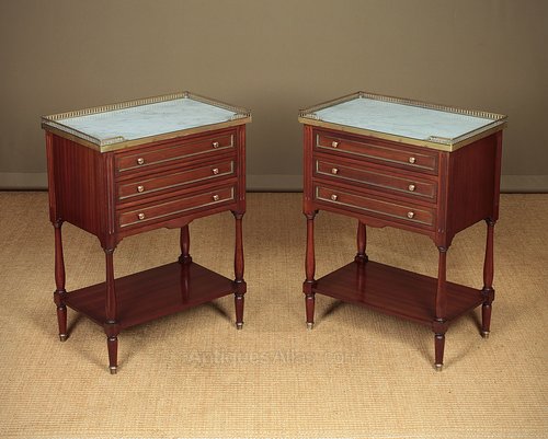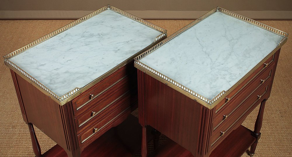 Pair Marble Top Mahogany Side Tables c.1930.