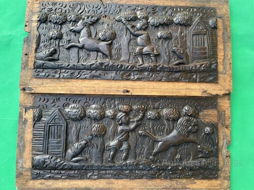 Pair of 17th Century Oak Hunting Panels