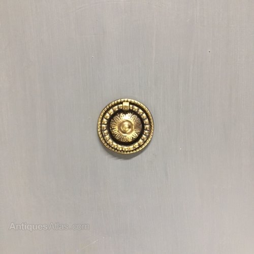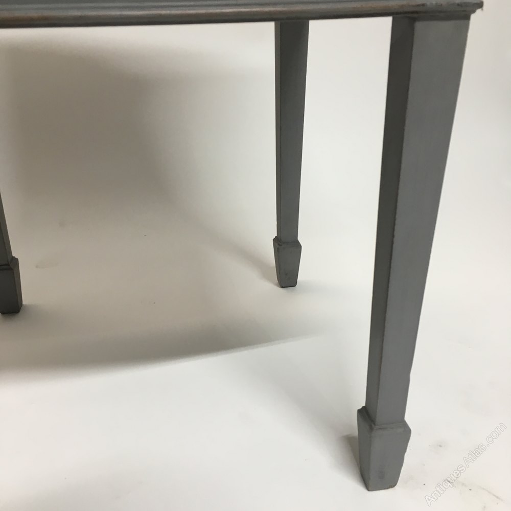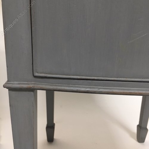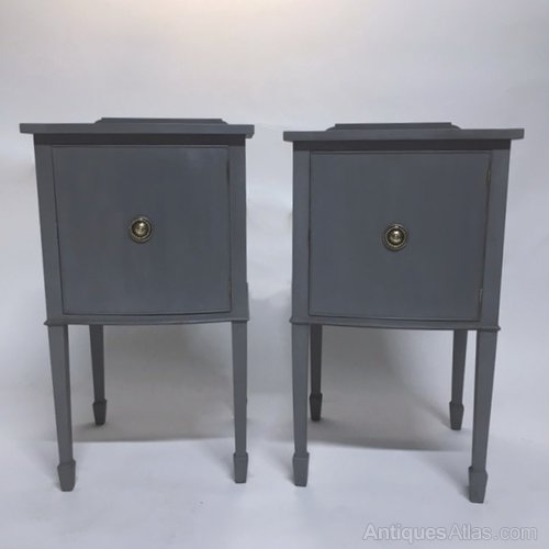 Pair of 19th Century Bedside Tables in a Mid Grey with Brass pull handles and Marlborough legs. Internal shelves with lots of storage space. Later painted.