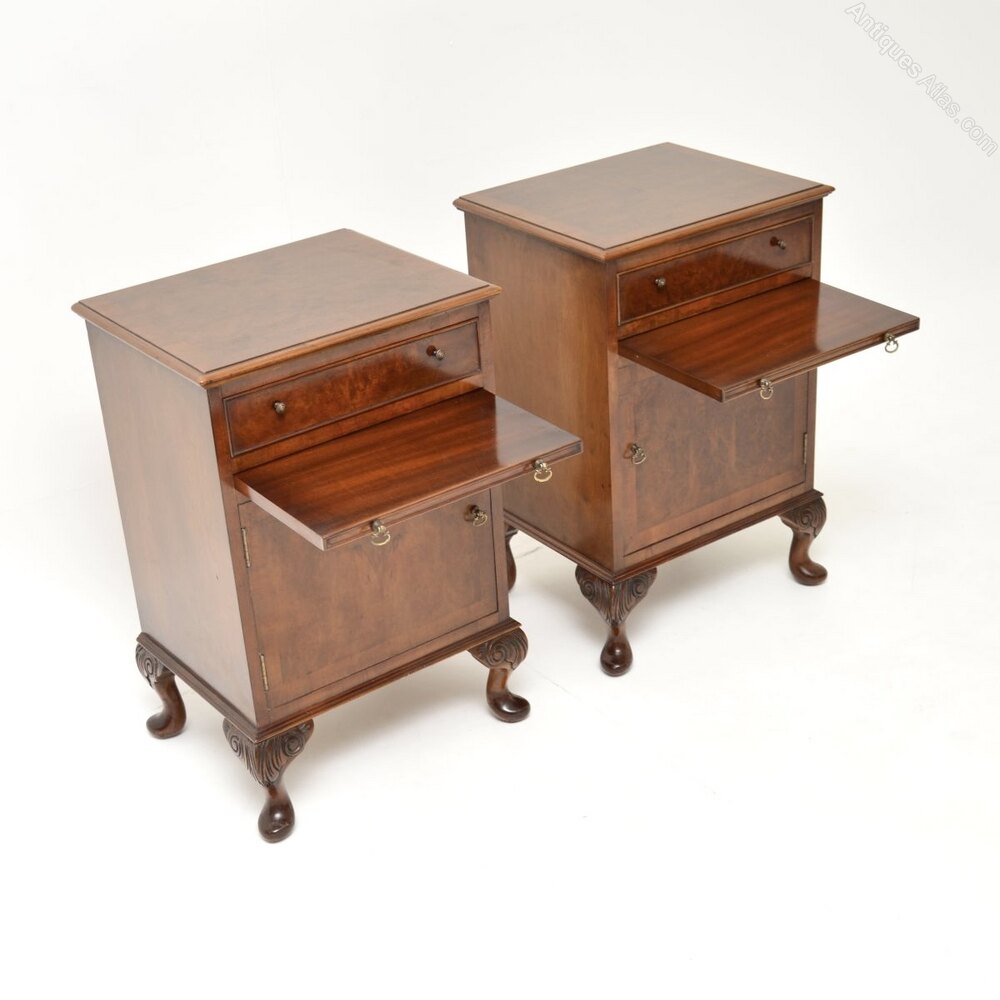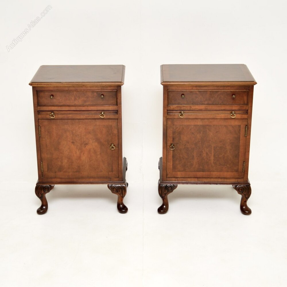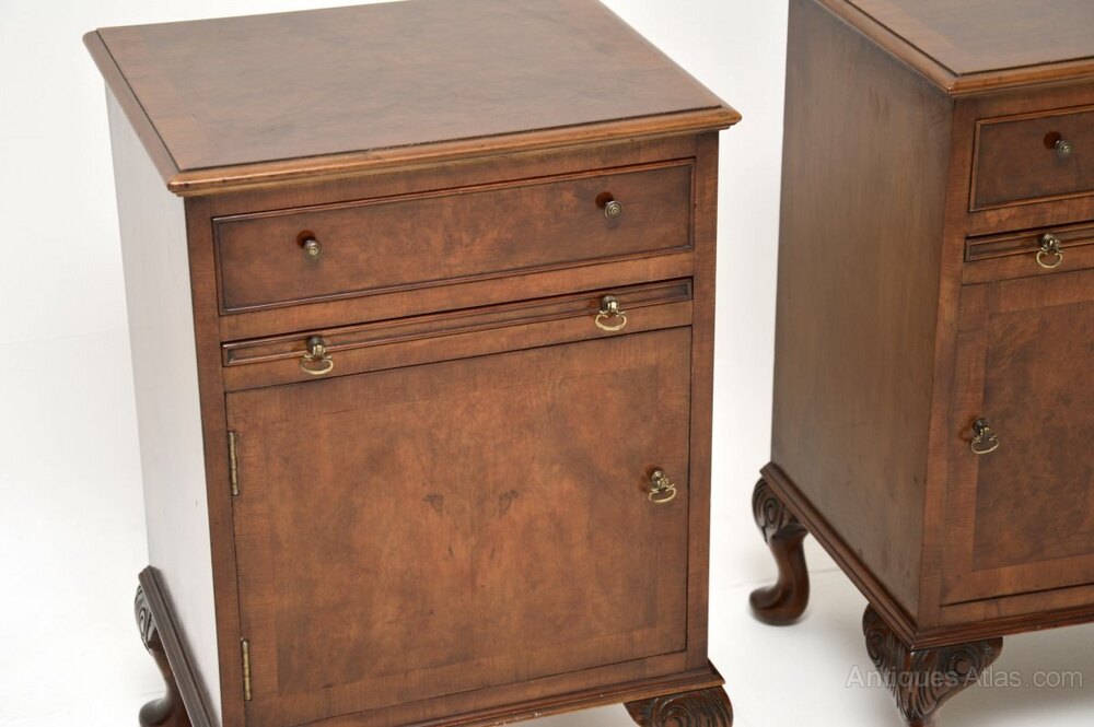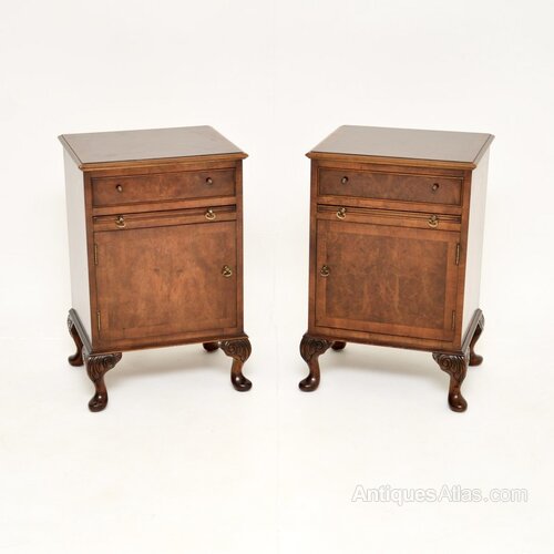 A smart and very well made pair of antique burr walnut bedside cabinets. They were made in England, they date from around the 1930’s.