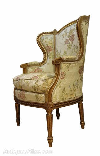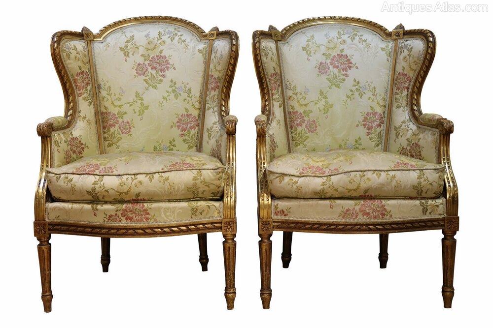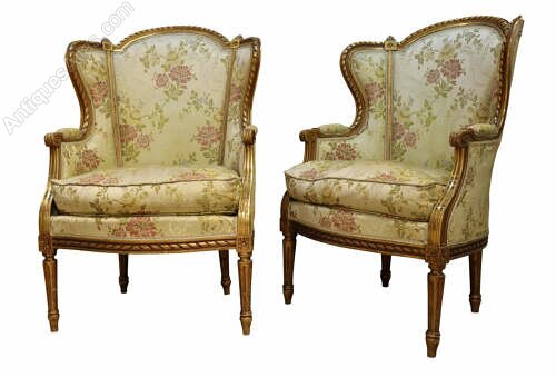 Pair of Antique French Giltwood Wingback Armchairs