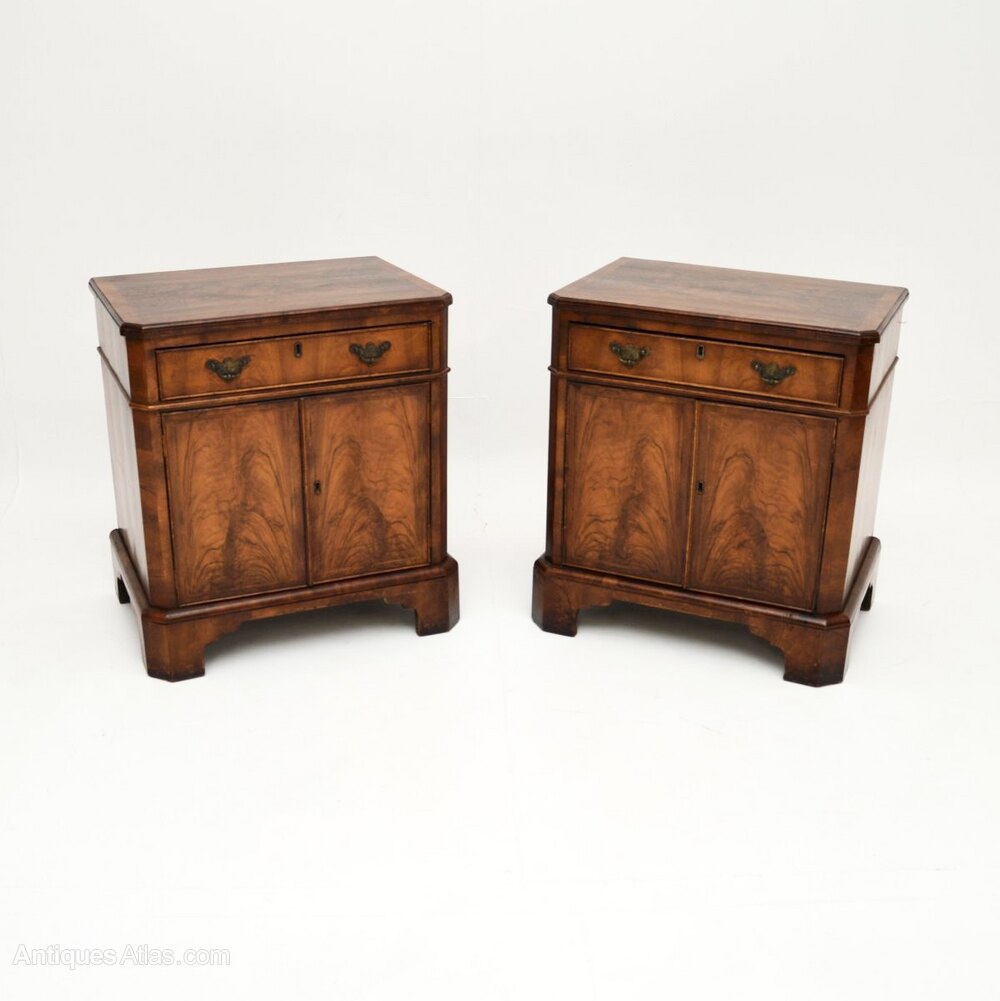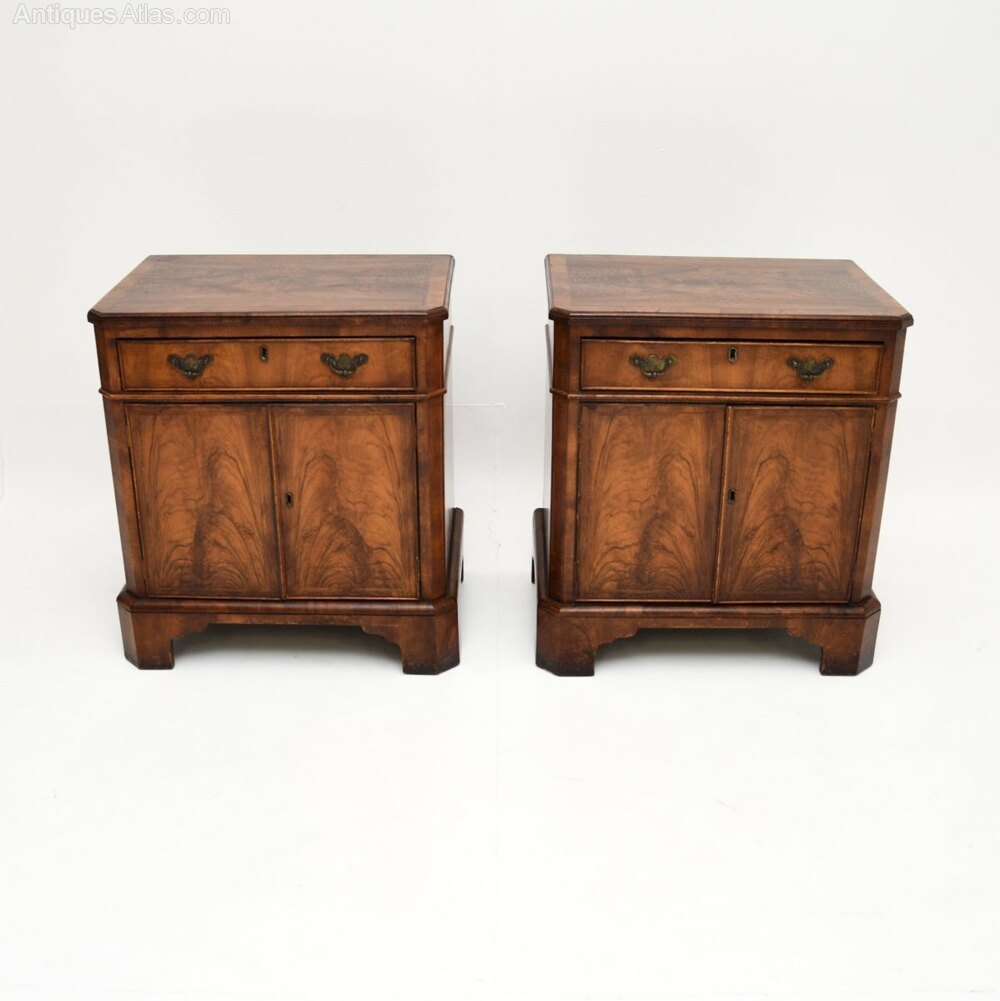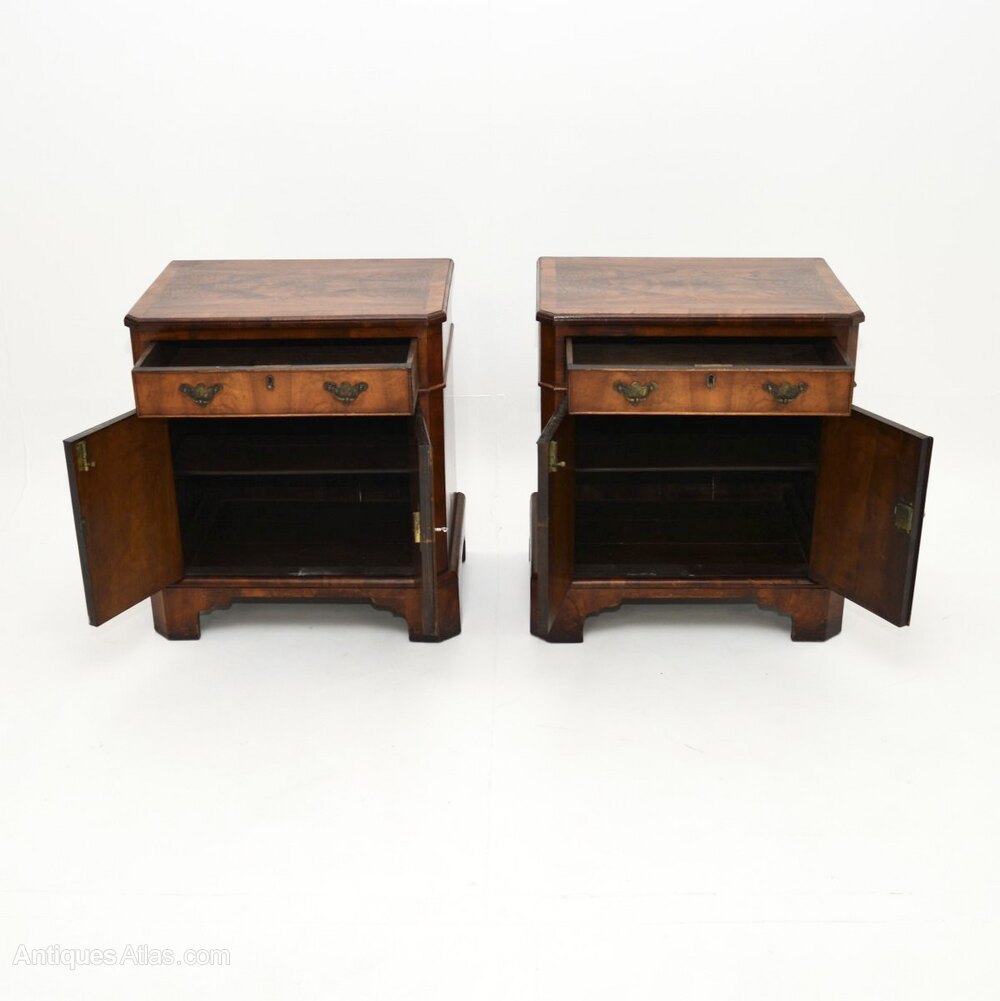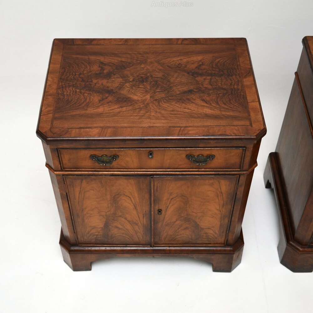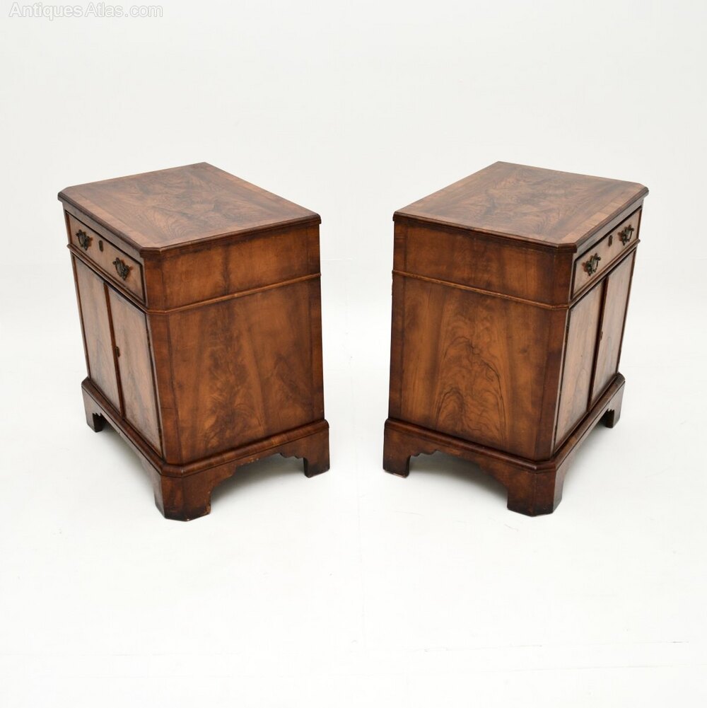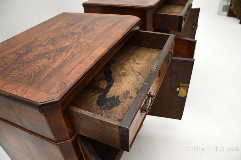 Pair of Antique Inlaid Walnut Bedside Cabinets
